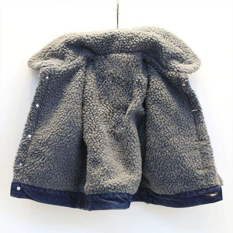 Kids Fleece-Lined Denim Winter Jacket Warm Lambskin Coat