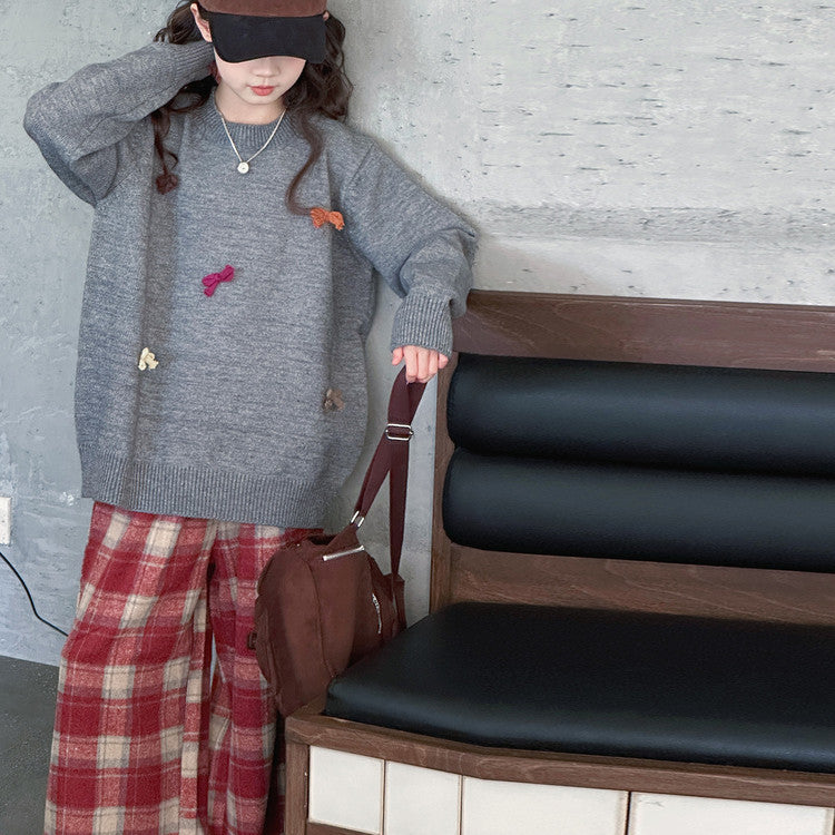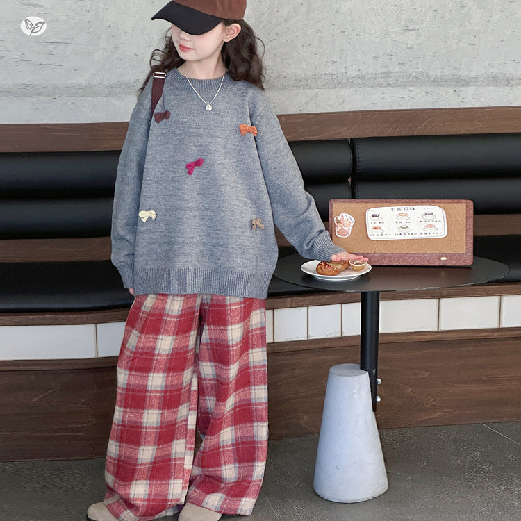 The soft knitted pullover sweater features a cute bow detail, adding a charming and stylish touch 🌸. Paired with classic plaid pants, the set is perfect for school, family gatherings, or casual playdates 🌿. Lightweight yet cozy, it keeps your child comfortable while providing a trendy, coordinated look.