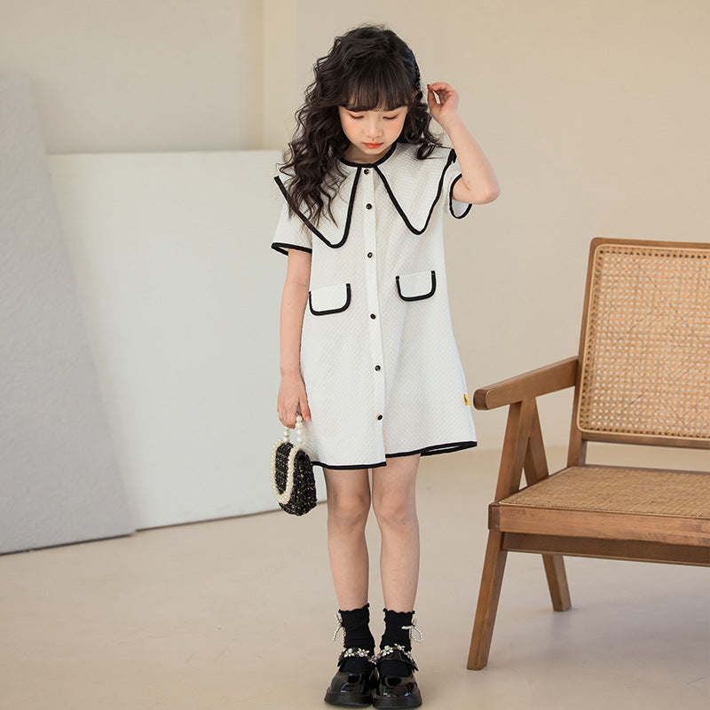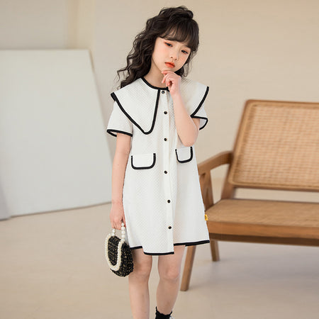 Girls’ 2025 Summer Dress – Korean Style Check Skirt