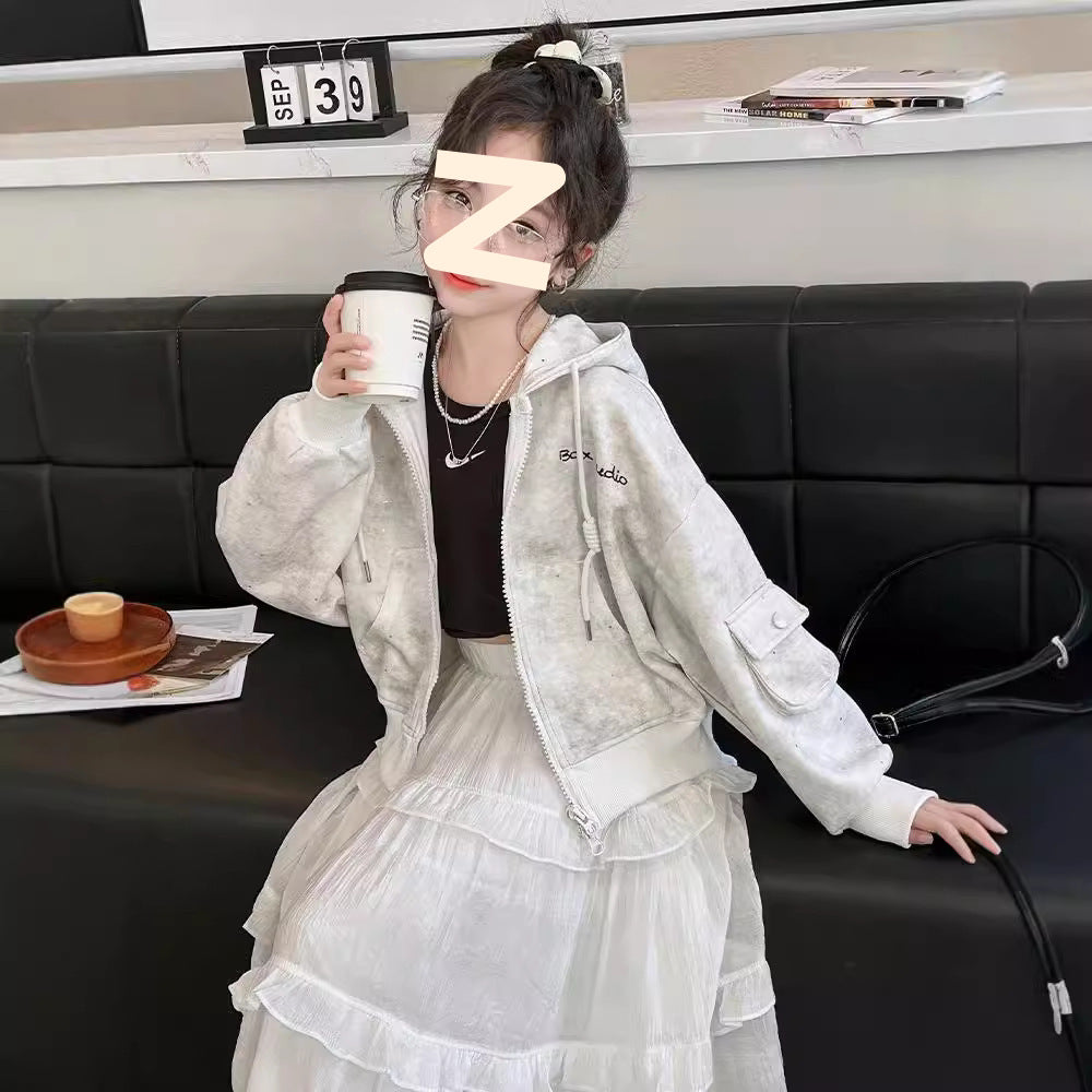 Girls’ Sparkling Letter Hoodie – Stylish Autumn Zipper Jacket