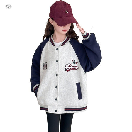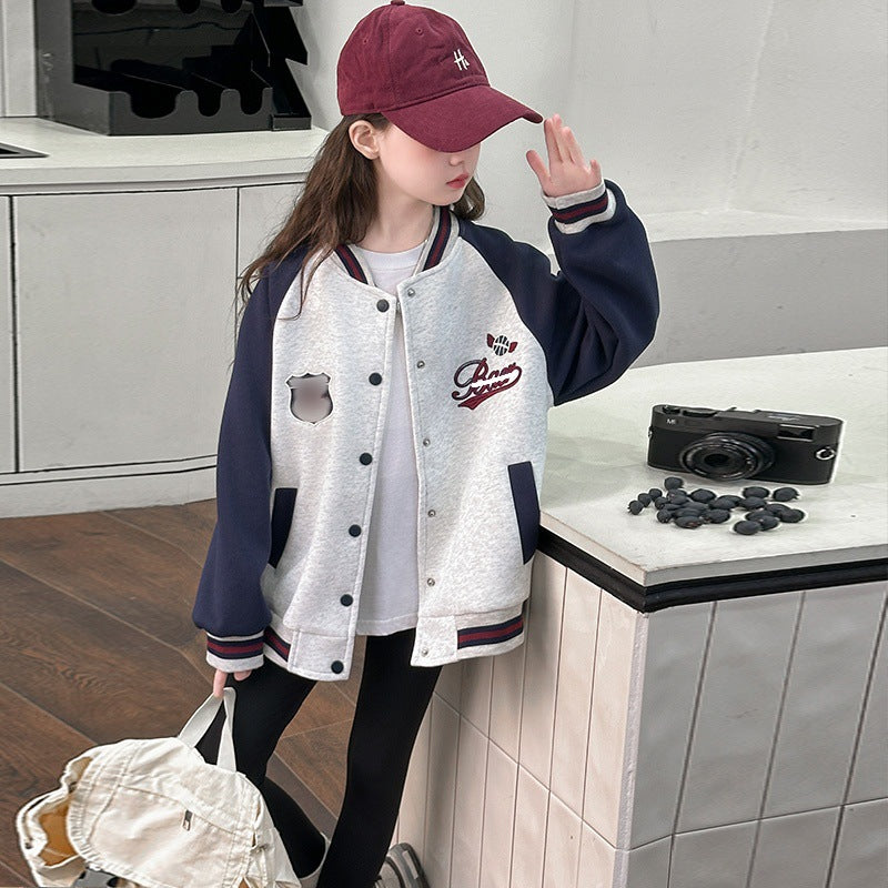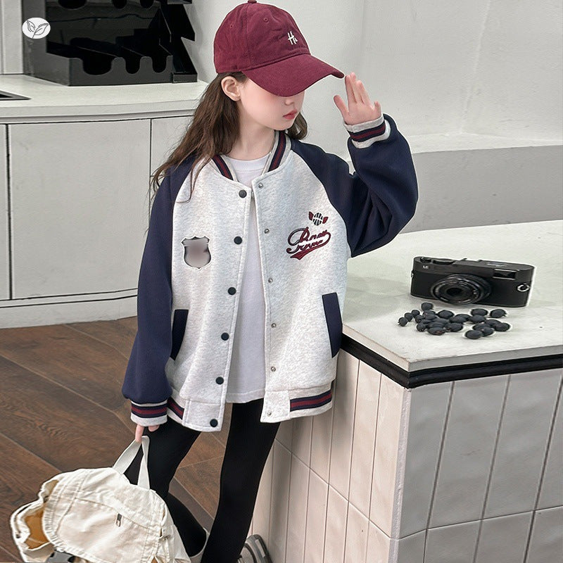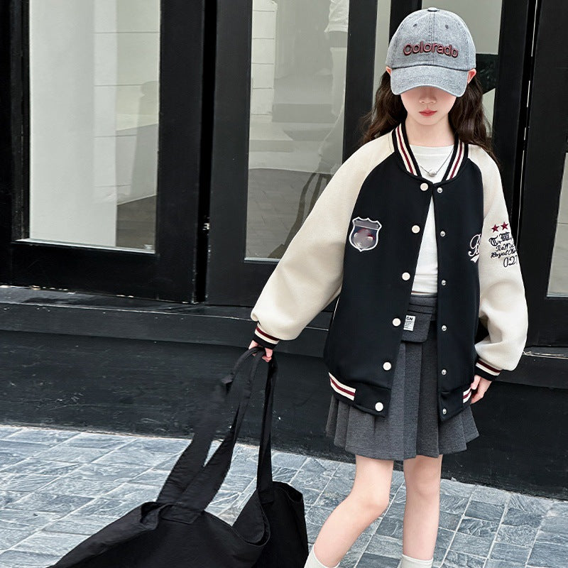 Girls Contrast Color Baseball Jacket Kids Spring Coat