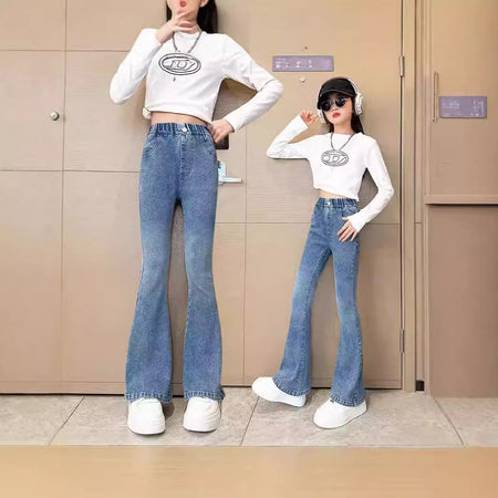 Girls’ Bell Bottom Jeans – Slim Stretch Korean Style