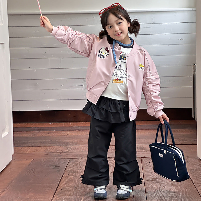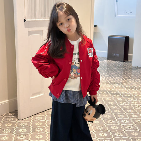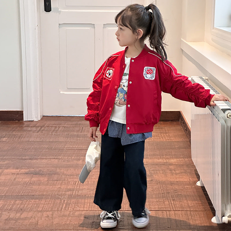 Girls’ Cartoon Baseball Jacket 2025 Korean Style