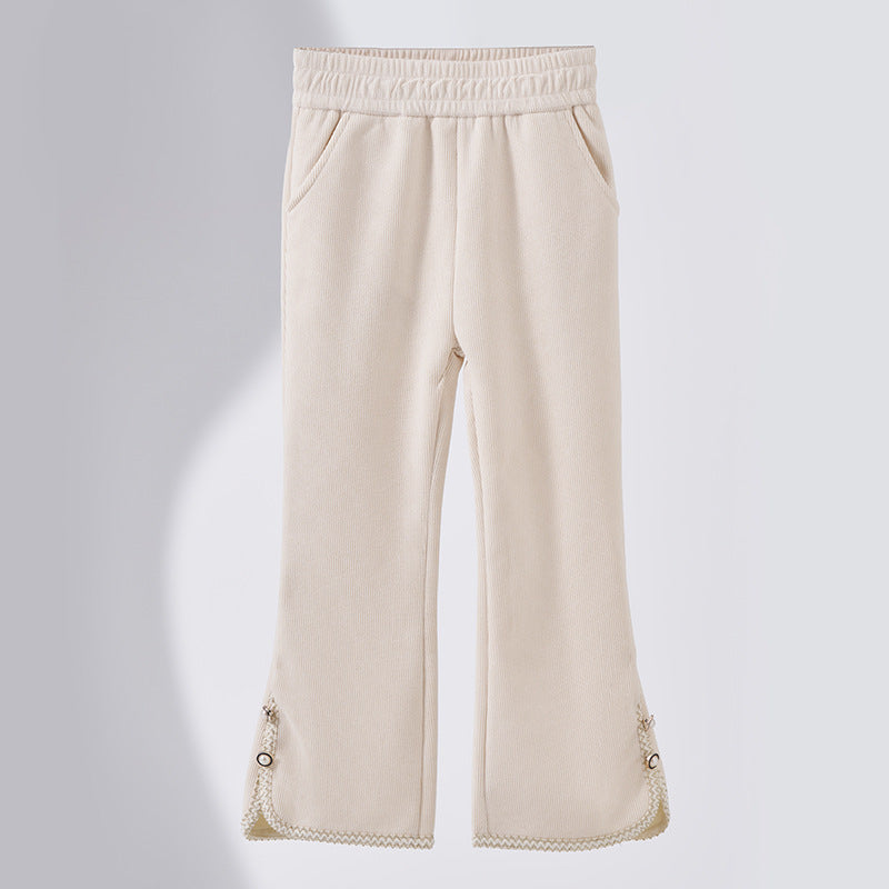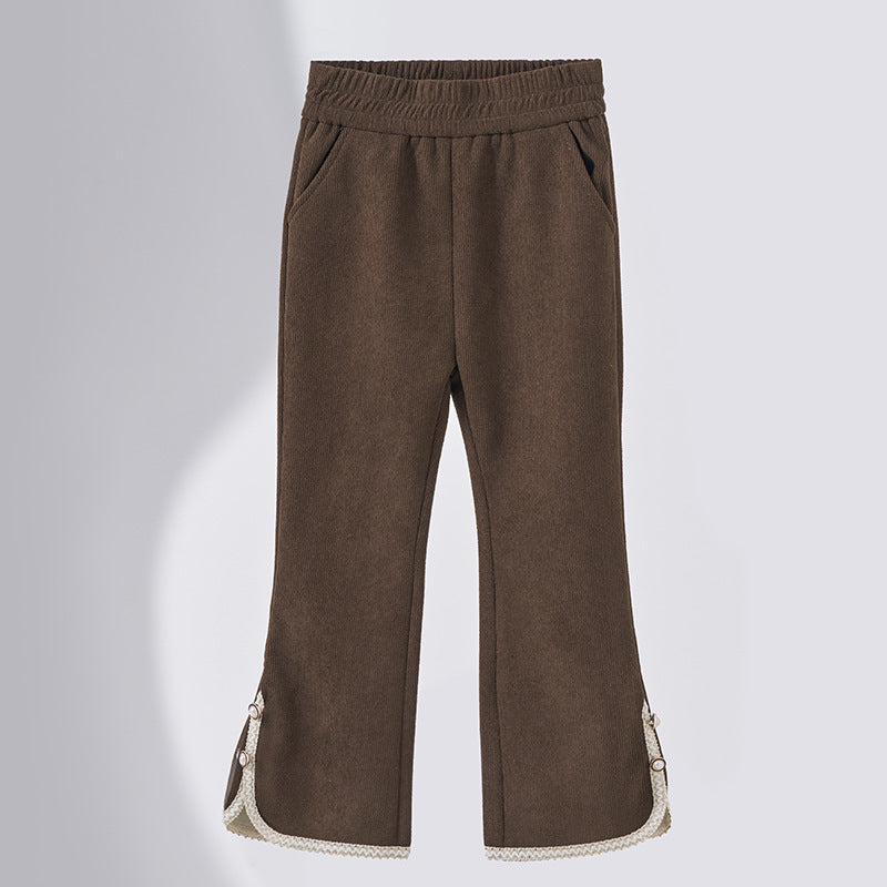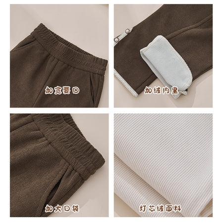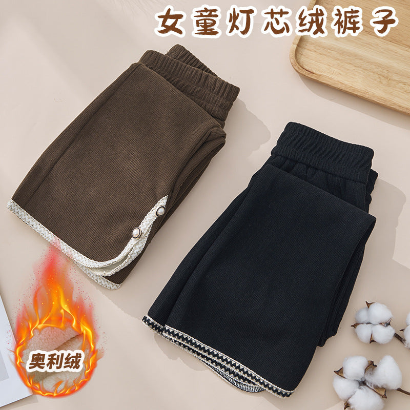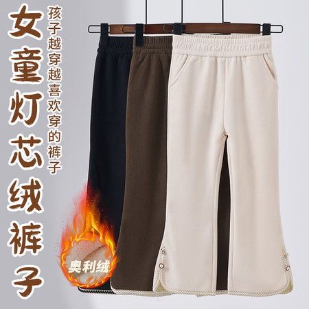 Girls' Corduroy Wide-Leg Pants Winter Warm Casual Trousers