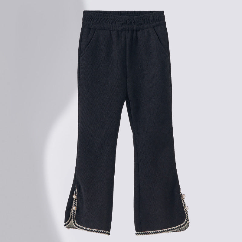 These trousers are perfect for school, outings, or festive occasions, giving your child a stylish yet comfortable option for colder months. The wide-leg cut allows freedom of movement, while the slit detail adds a chic touch that pairs easily with sweaters, boots, or coats.
