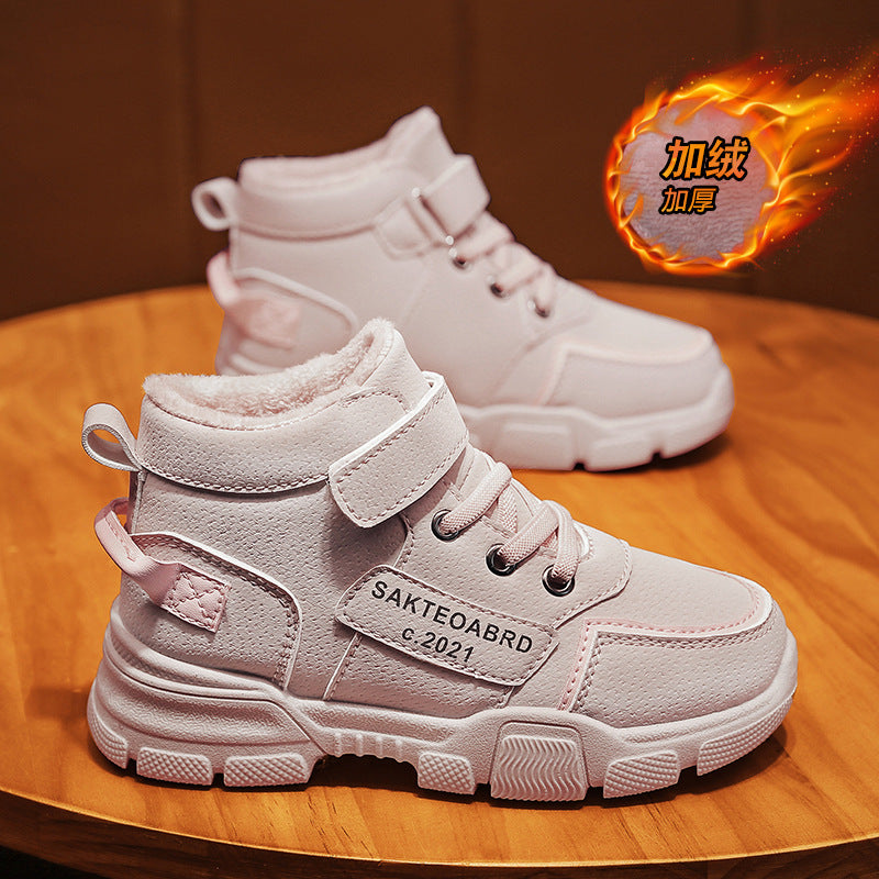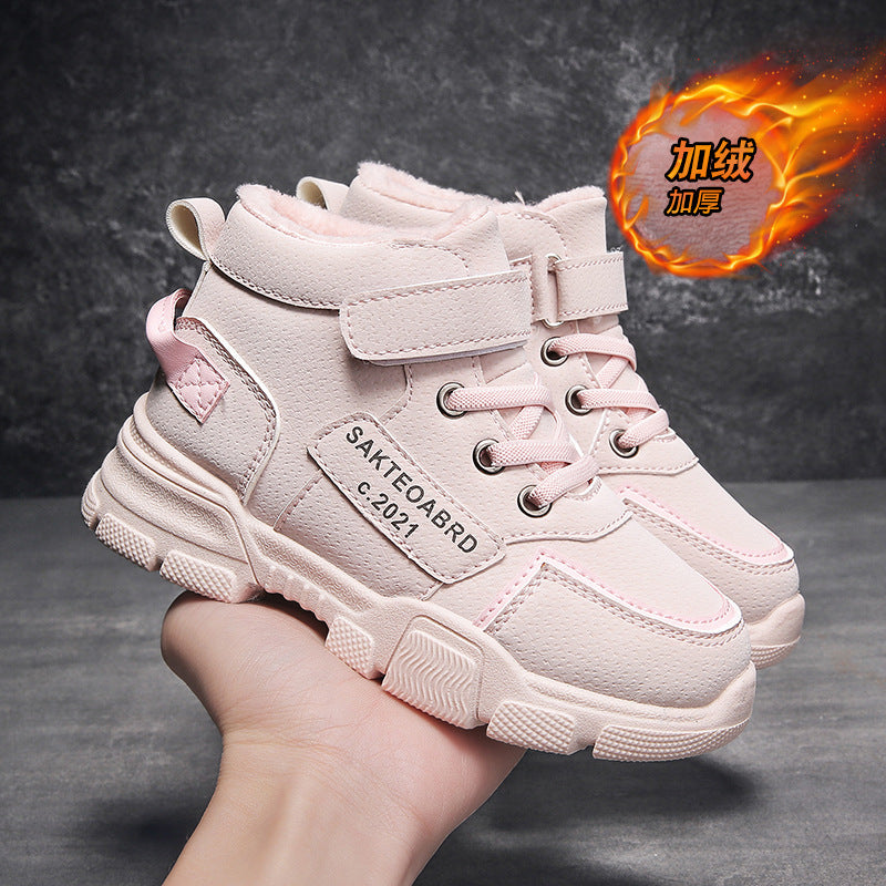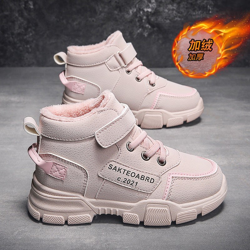 Girls’ Velvet Snow Boots – Warm Winter Cotton Shoes