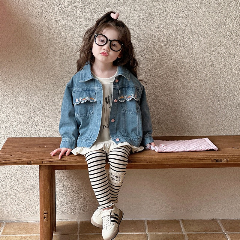 Crafted from high-quality denim fabric, the jacket is both durable and soft, making it suitable for active kids who love to move. The lightweight design ensures comfort during spring breezes and autumn chills, while the stylish cut adds a fashionable edge to any outfit. Its versatile look pairs beautifully with dresses, skirts, leggings, or casual pants, giving endless outfit options.