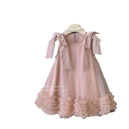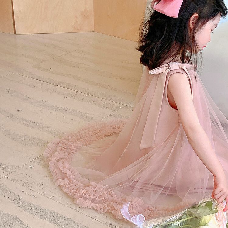 Girls' Sleeveless Bow Princess Dress Summer Mesh Gown
