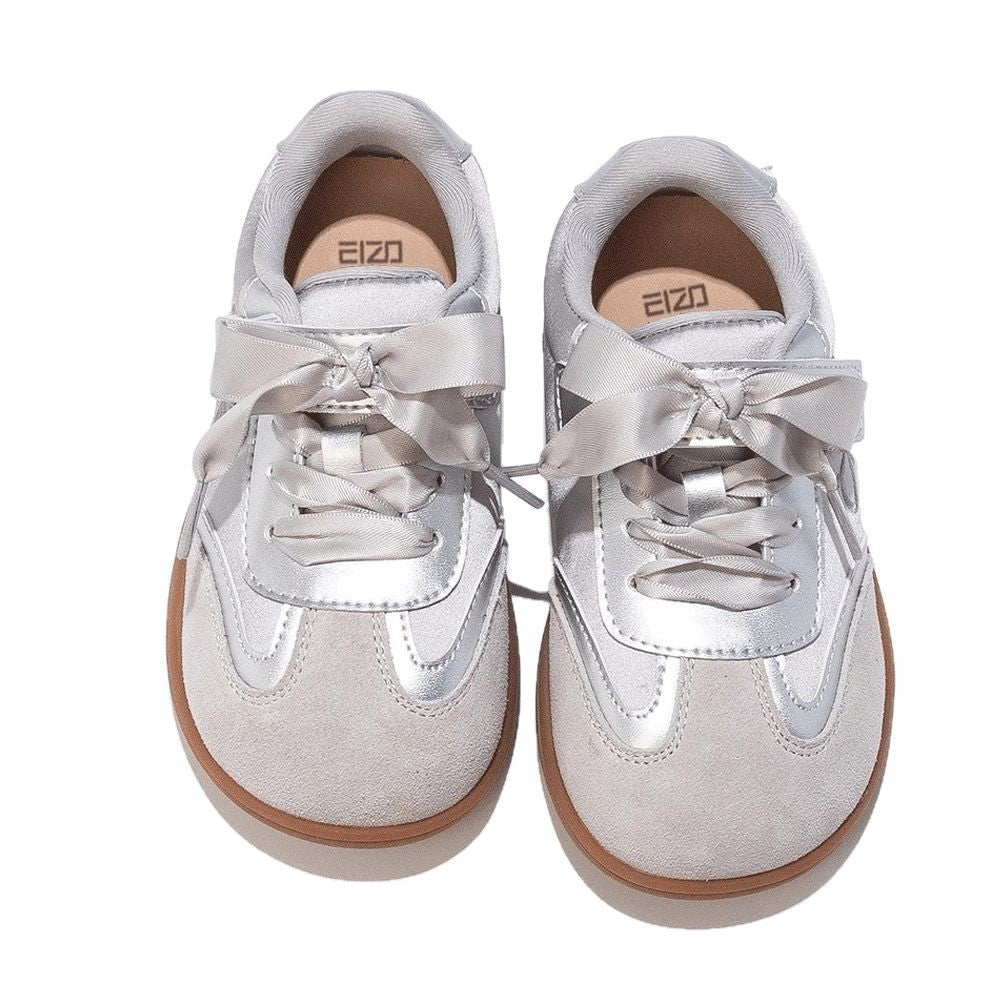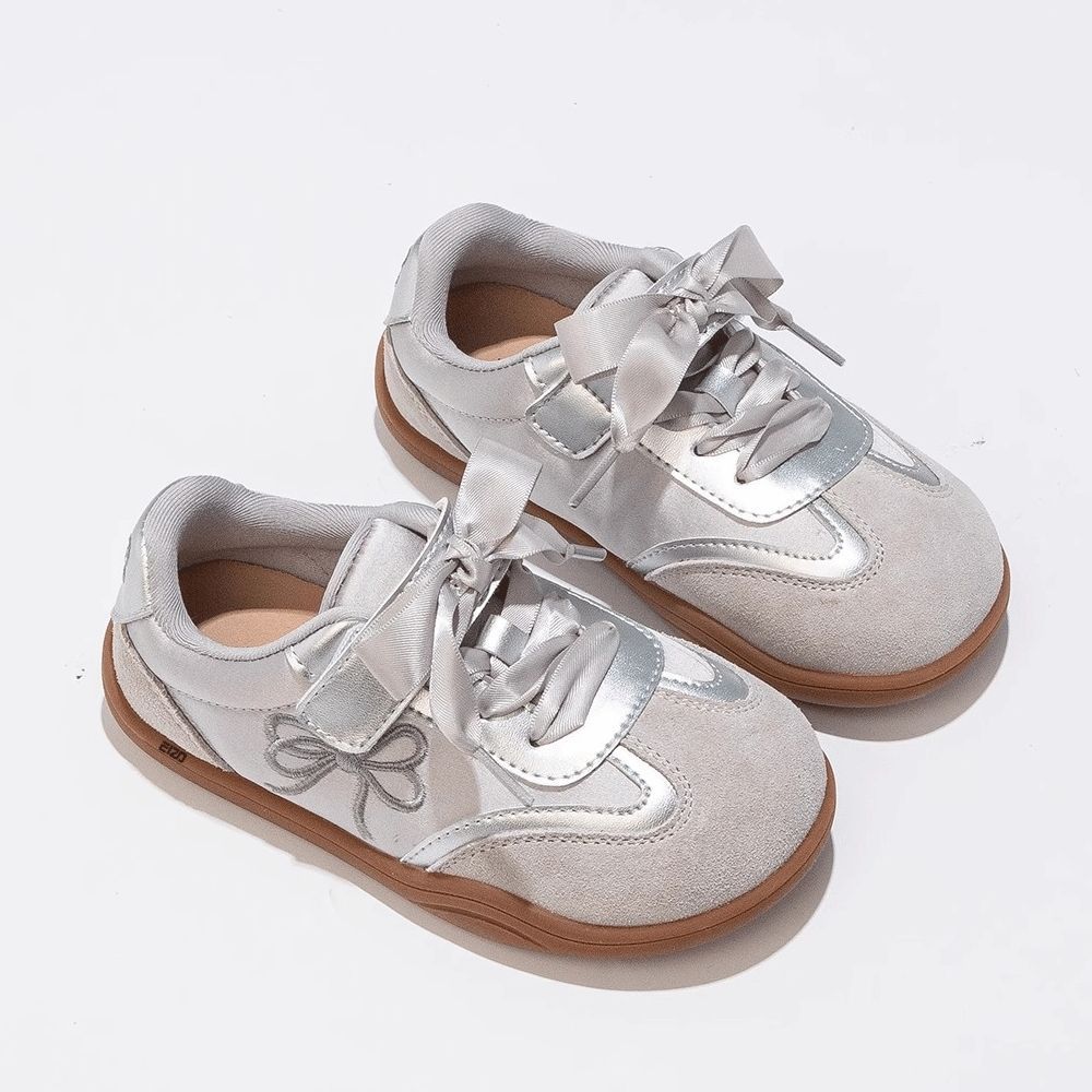 The ballet-inspired silver design adds a playful, stylish touch, making these sneakers stand out while remaining versatile enough to pair with casual outfits, dresses, or sportswear. Lightweight and flexible, they’re ideal for medium and large children who need comfortable everyday footwear.