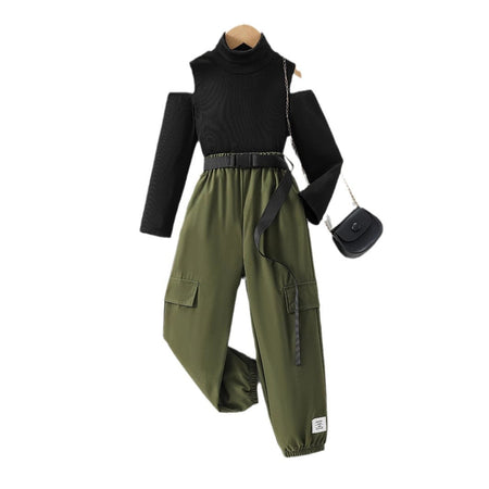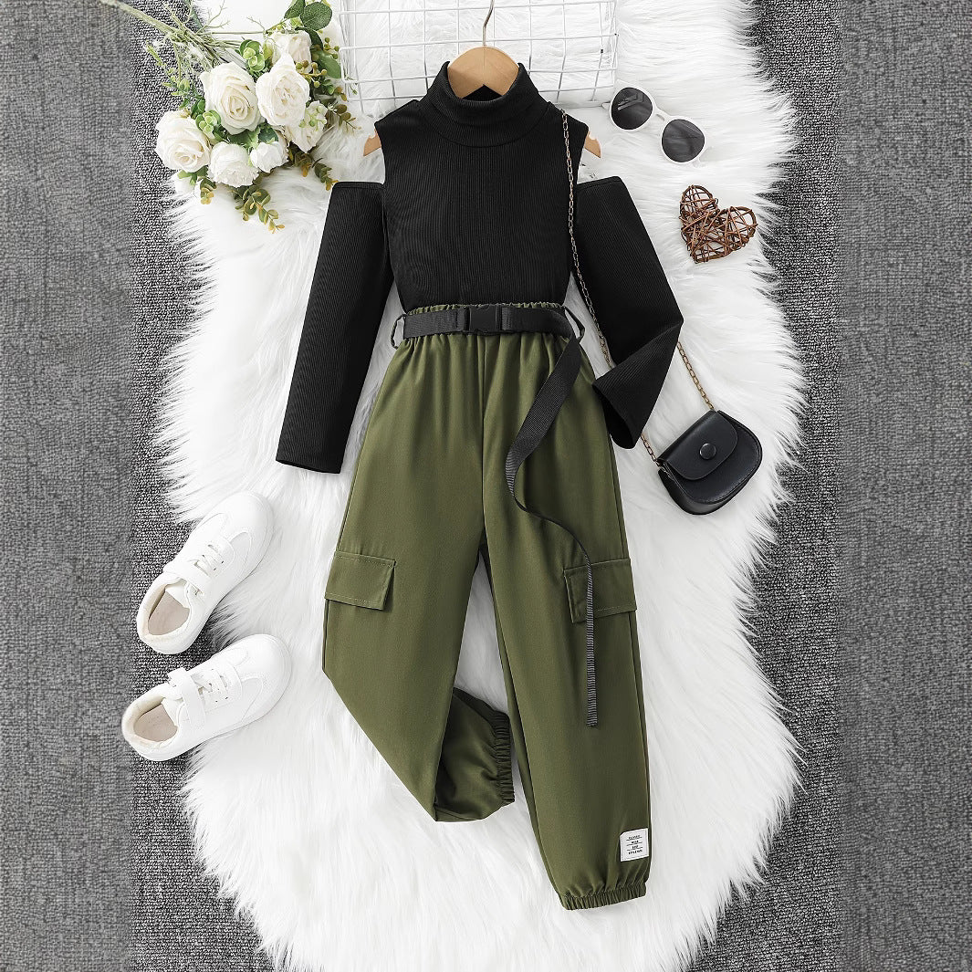 Style meets comfort in this trendy girls' two-piece set! πΏπ« Featuring a soft knitted top and chic wide-leg workwear-style pants in a stunning green tone, this outfit is perfect for the little fashionista in your life. The included belt adds an extra flair, making it a standout choice for any casual or special occasion.