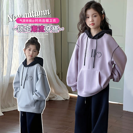 Girls' Hooded Sweatshirt – Spring & Autumn 2025 Korean Style