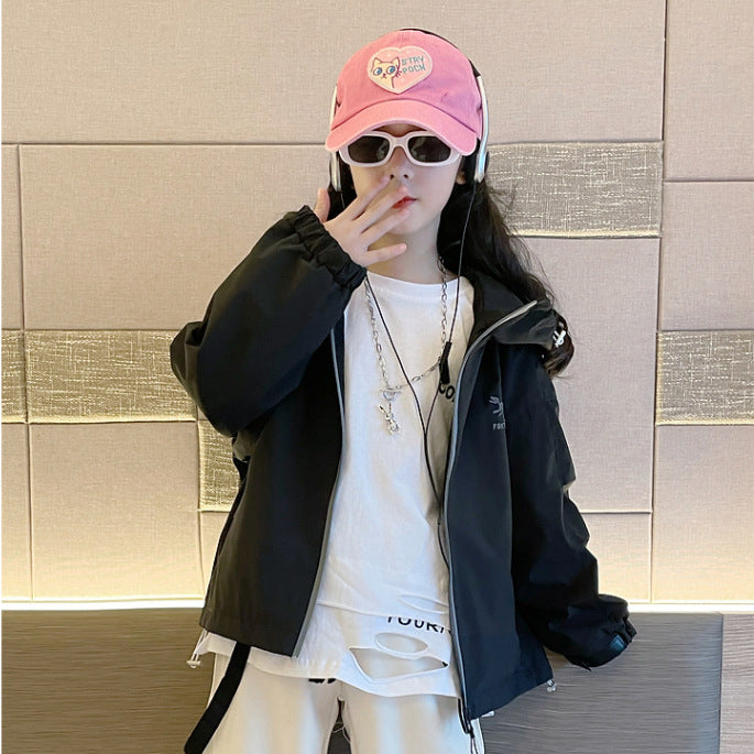 Girls’ Hooded Windproof Jacket – Stylish Spring & Autumn