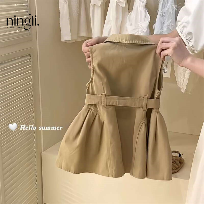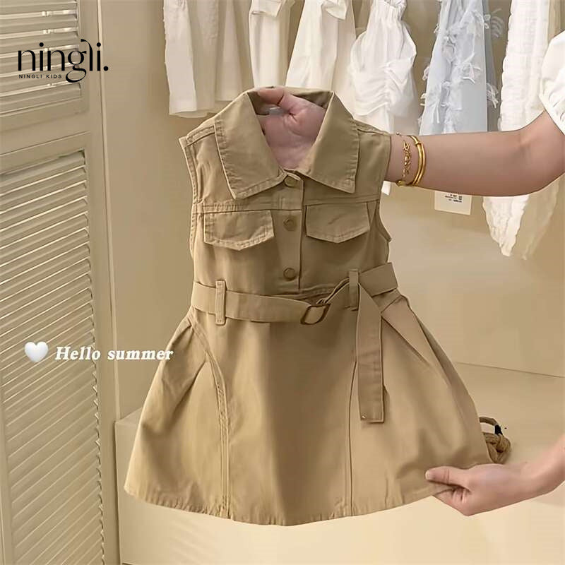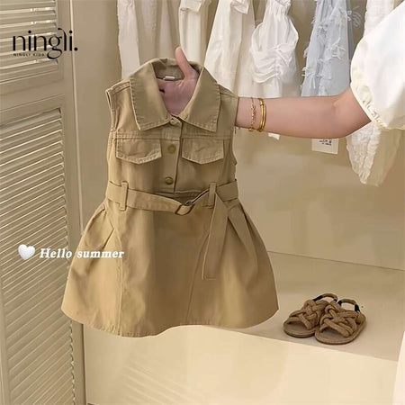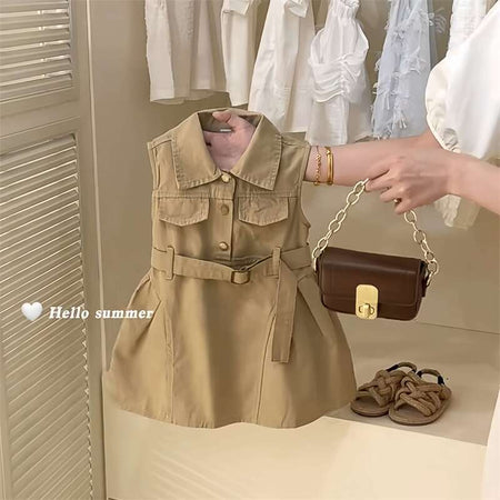 🌿 Made with lightweight, baby-friendly fabric, this sleeveless workwear-style dress allows freedom of movement and airflow, making it perfect for active little girls who love to play, explore, and shine 👧🎈. The vest-style top with A-line skirt offers a chic silhouette while being super easy to wear and move in.