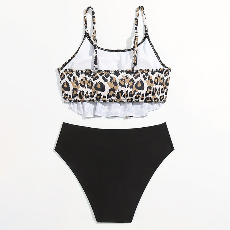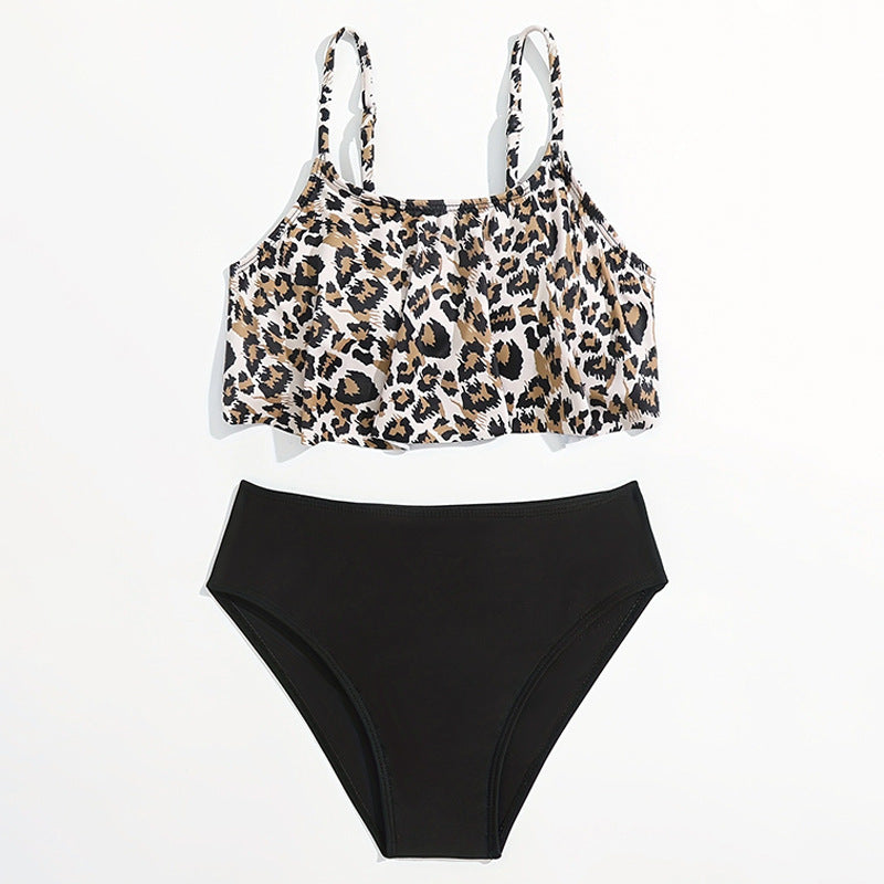 Girls’ Leopard Bikini Set – 2024 Ruffle 2-Piece Swimsuit