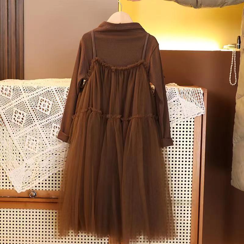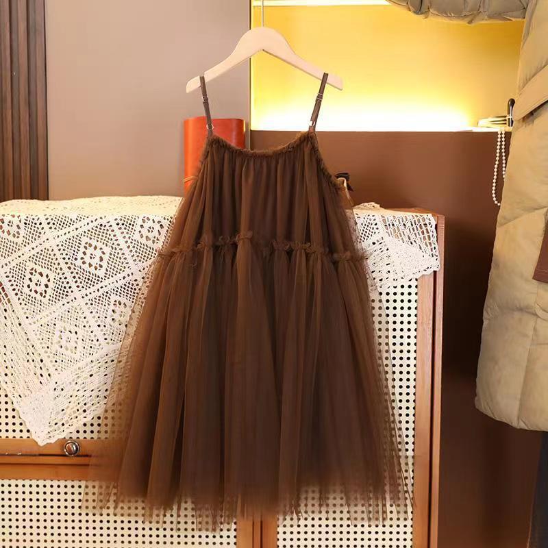 Girls' Mesh Sling Dress Set – Spring/Summer Two-Piece