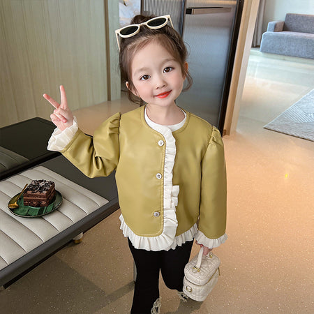 Whether she’s walking in the park, attending school, or enjoying a family outing, this girls’ leather jacket gives her a fashionable, confident, and comfortable look 🌟. Make this trendy piece a must-have in her spring/fall wardrobe ✨.