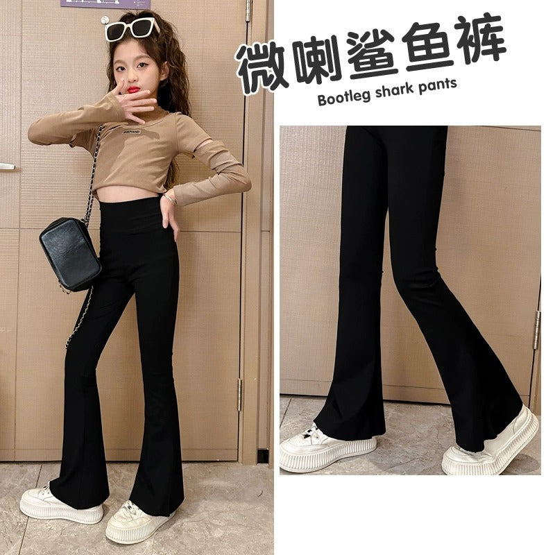 Girls’ Elastic Shark Pants – Thin Spring & Summer Leggings