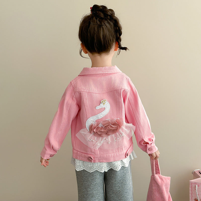 Girls Pink Denim Jacket 2025 Korean Princess Autumn Coat
