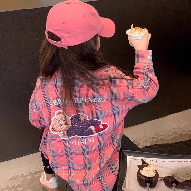 Girls' Plaid Shirt Long Sleeve 2025 Spring Fall Top