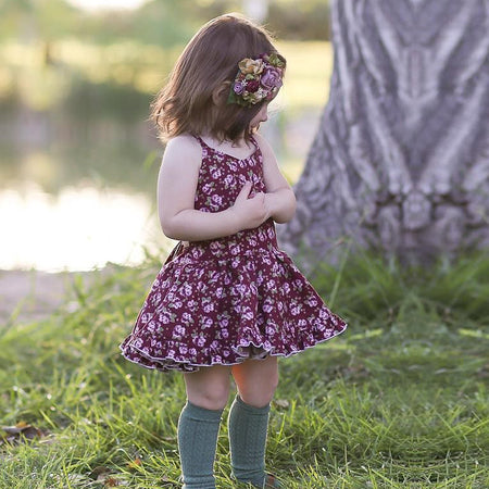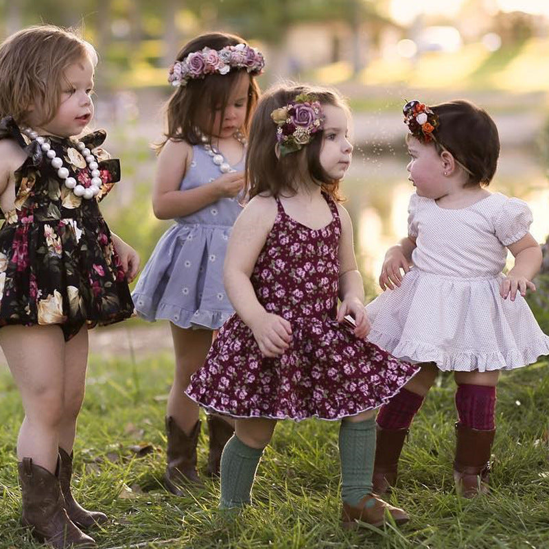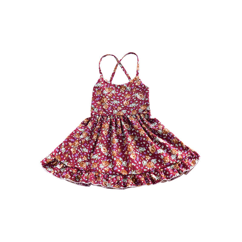 Girls’ Retro Floral Backless Dress – Summer 2024 Style