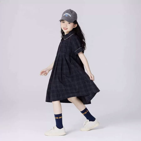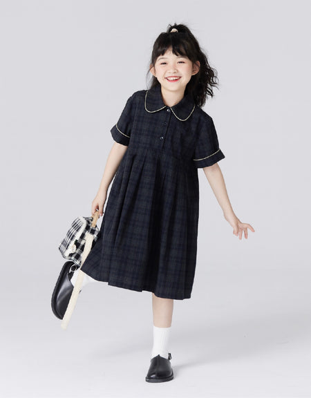 Girls' Retro Plaid Doll Collar Dress β Summer Cute Look