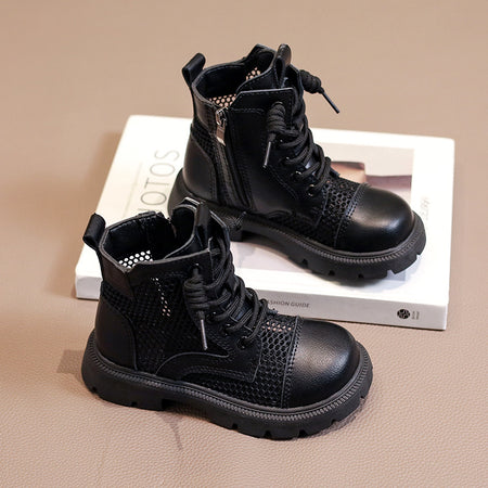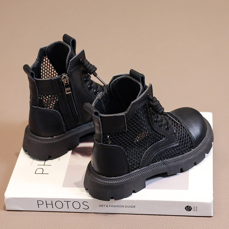 Step into summer 2025 with our trendy girls’ cut-out mesh boots—perfect for little girls in Nepal’s warm season! ☀️👧 These performance boots feature breathable see-through mesh panels that keep feet cool and comfortable during sunny days and active play. 🌬️🥿 Lightweight and stylish, they offer the perfect balance between ventilation and protection, making them ideal for casual outings, family events, or playtime. The short boot design provides easy wearability and a secure fit for little feet on the go. Designed to complement summer outfits, these boots add a fashionable edge to dresses, shorts, or skirts. 🌸🏞️ Perfect for urban areas like Kathmandu and Pokhara, where comfort and style are essential. Wholesale options available to help Nepalese retailers provide fresh, trendy footwear options for children’s summer collections. 🇳🇵🛍️