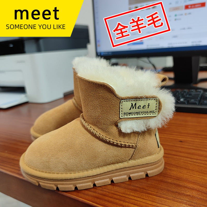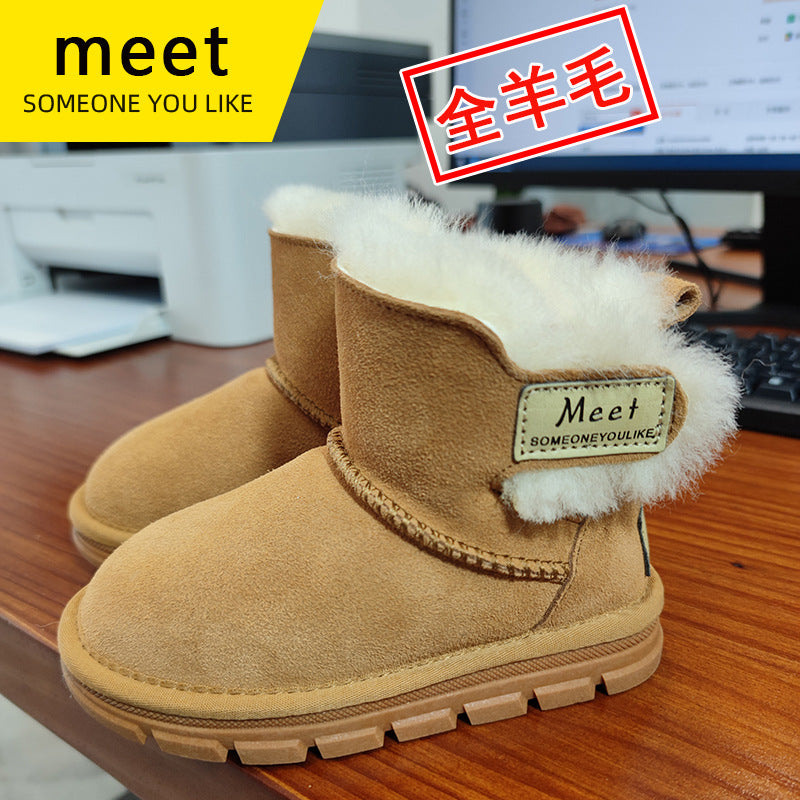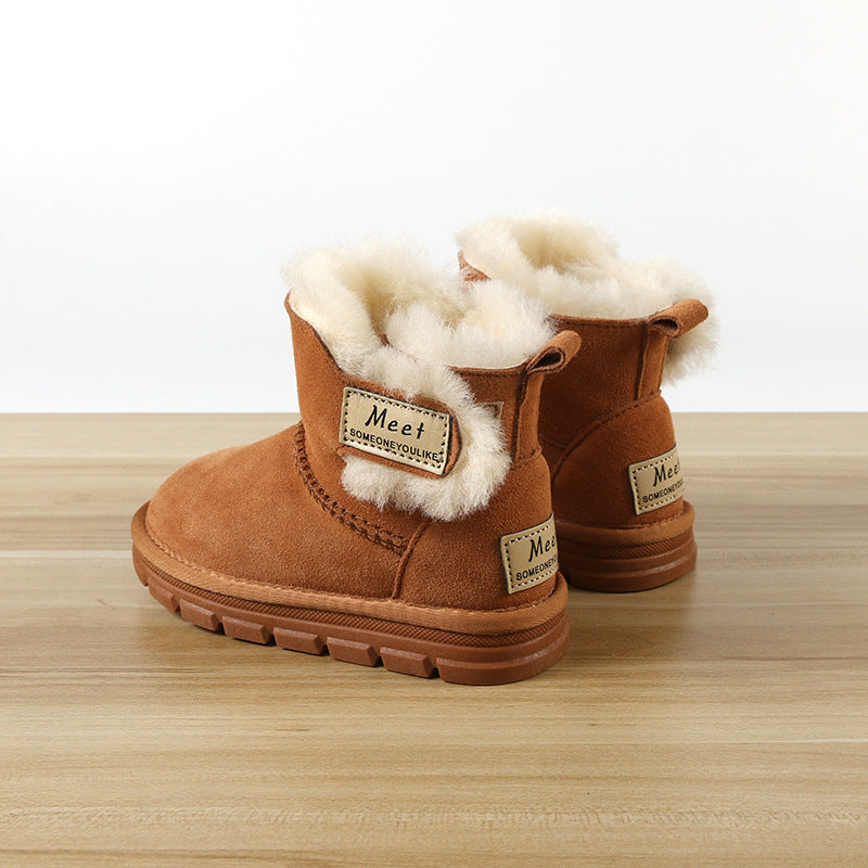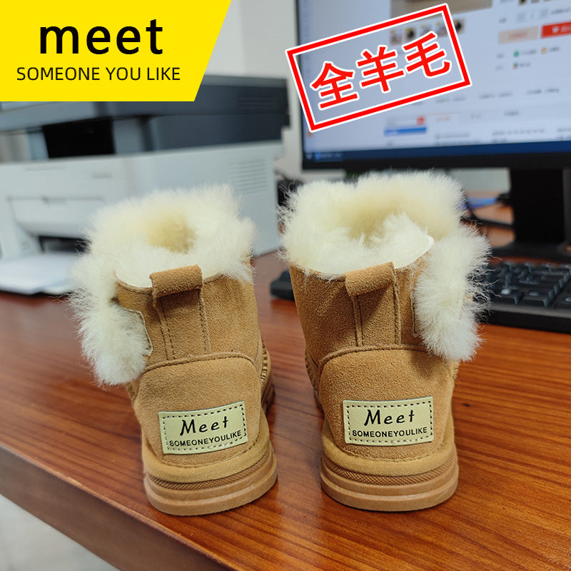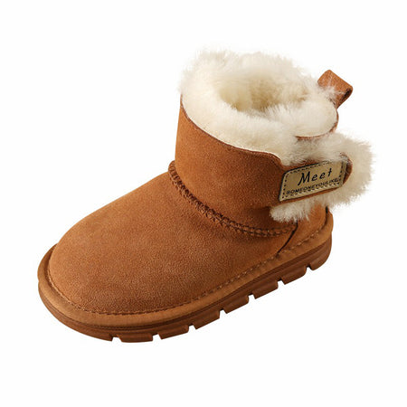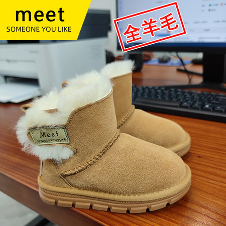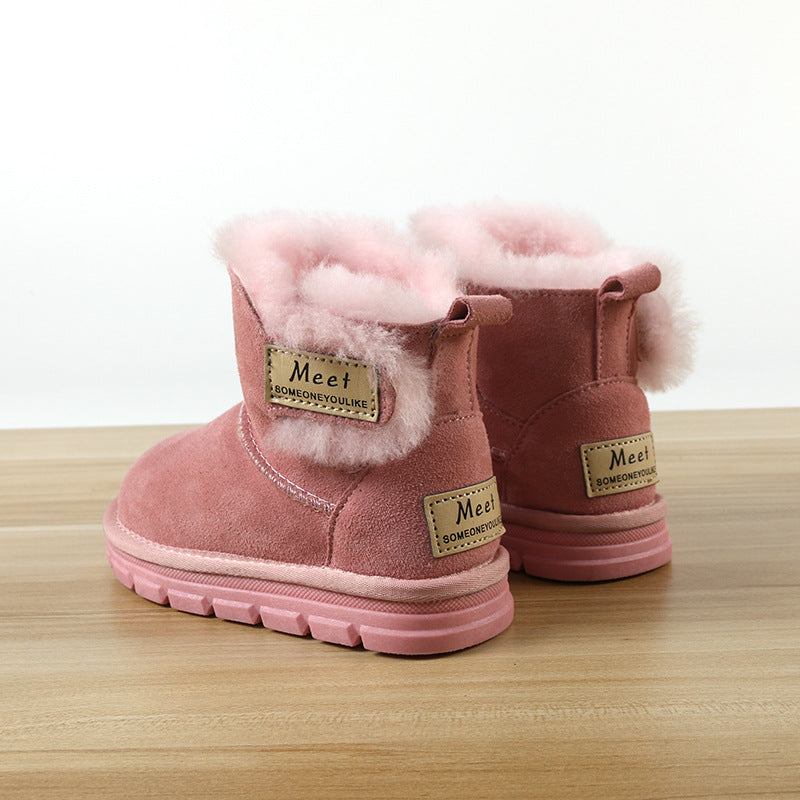 Girls' Sheepskin Snow Boots Thickened Fleece Lined