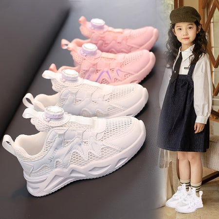 Kids’ White Sneakers Girls Boys Mesh Breathable Shoes
