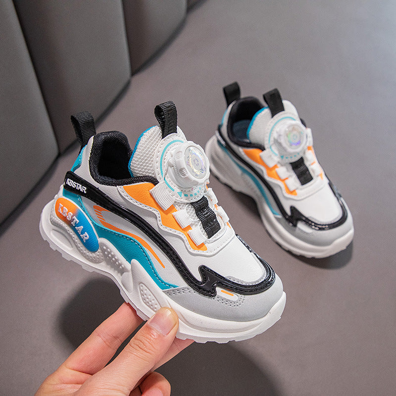 Perfect for school, casual wear, or light sports, these sneakers pair easily with any outfit. The knob closure makes them easy for kids to put on and take off themselves, while the breathable build ensures fresh, comfortable steps all day. Parents love the versatile style, while kids enjoy the trendy look.