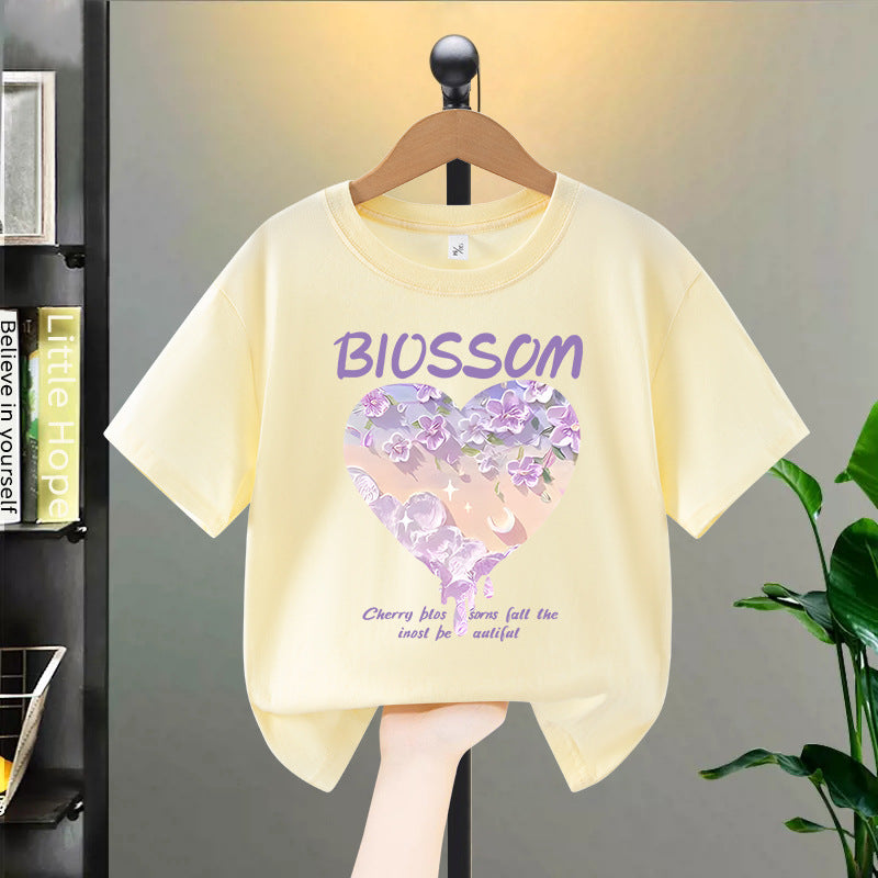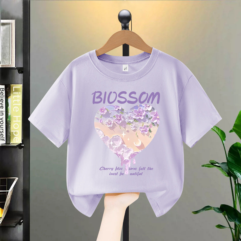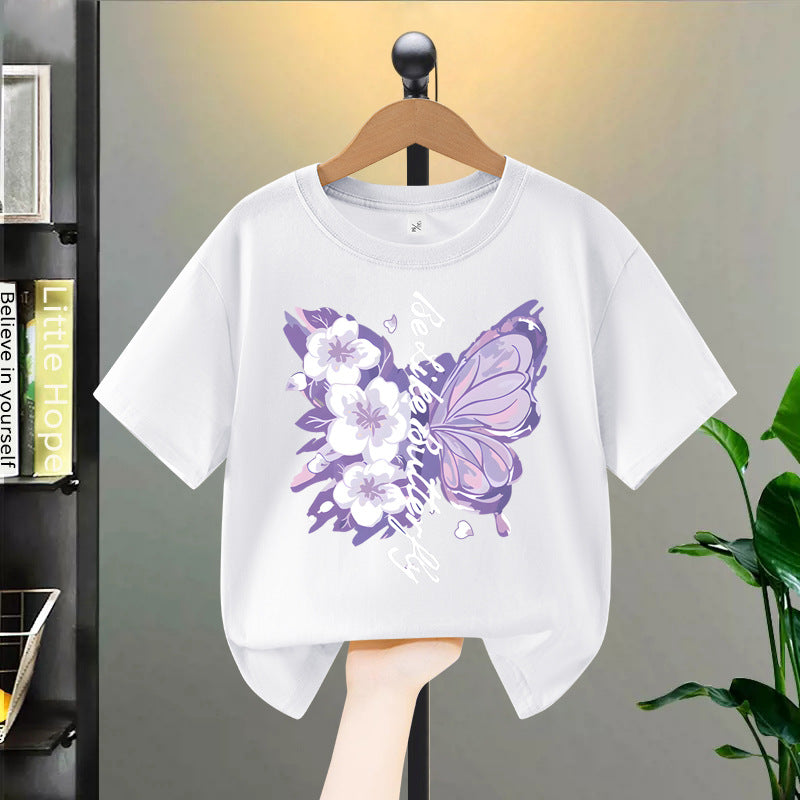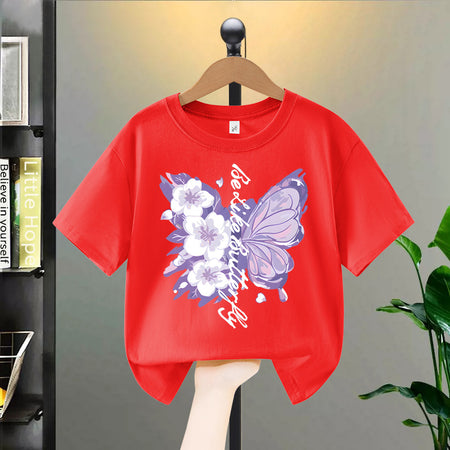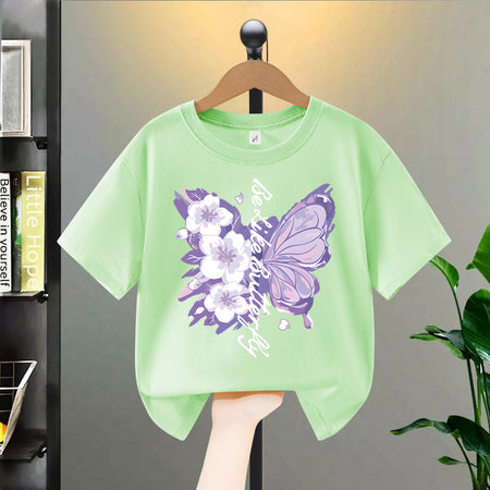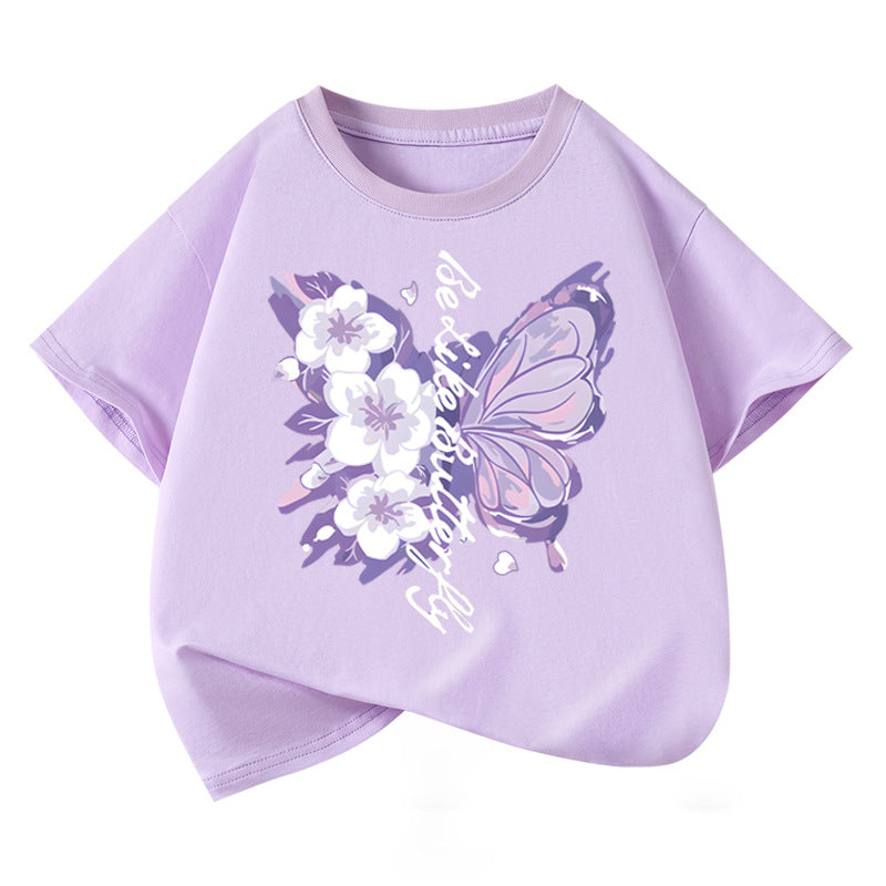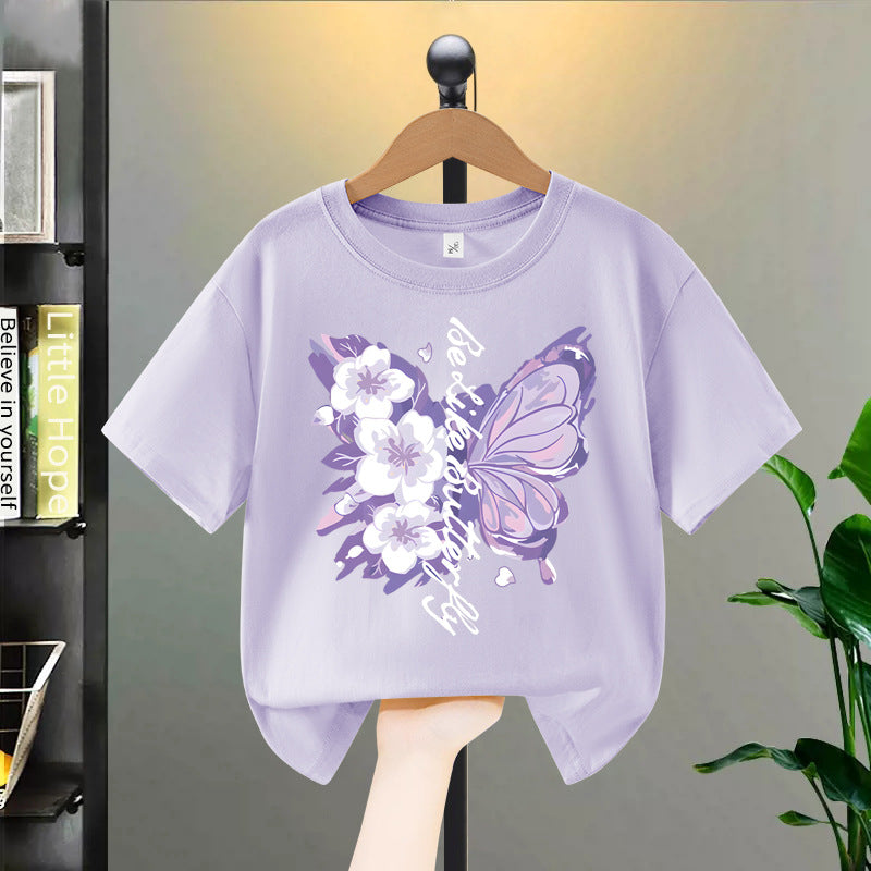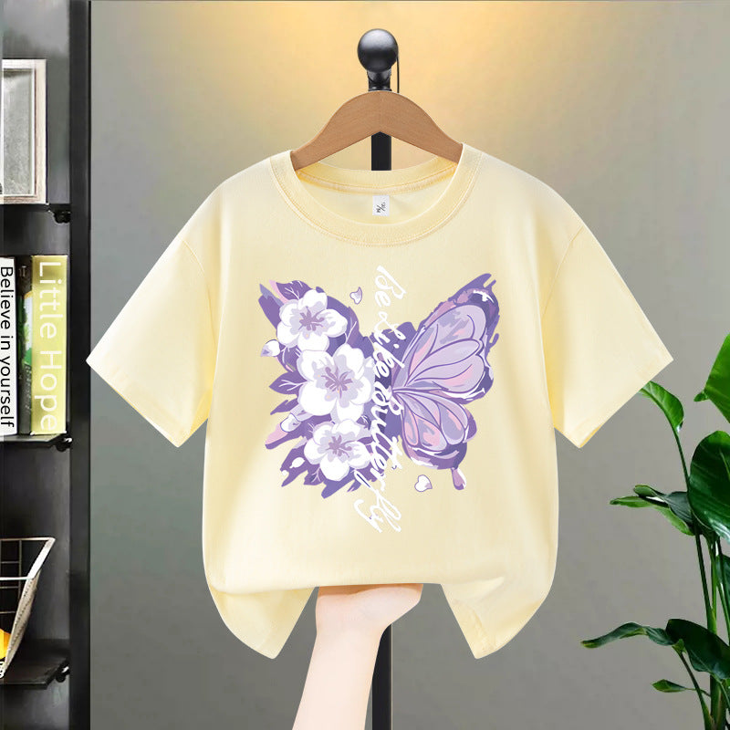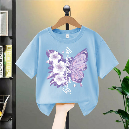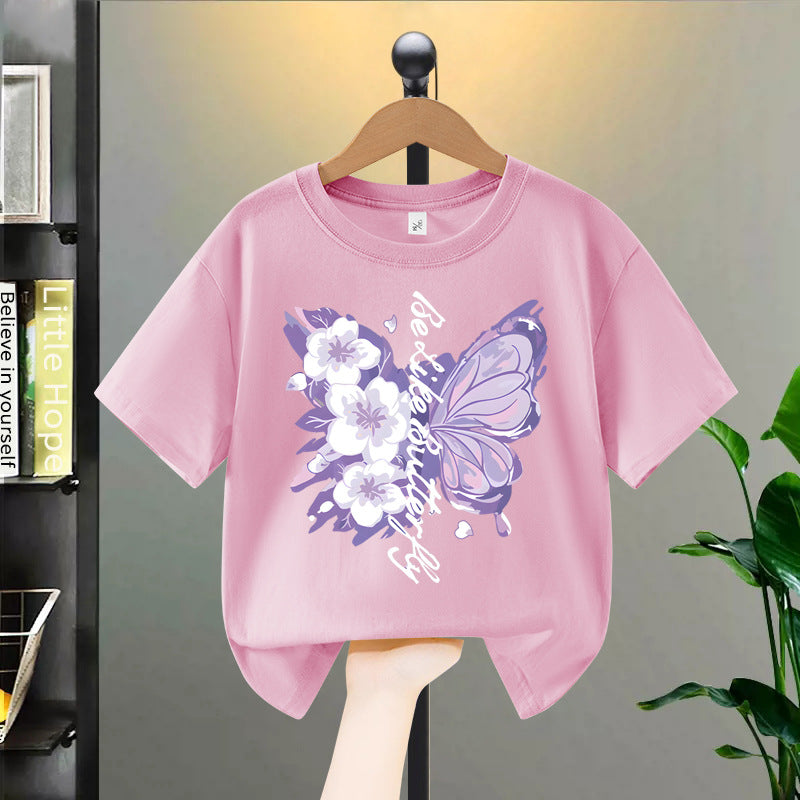 Girls Summer Butterfly Print Cotton Short Sleeve T-Shirt