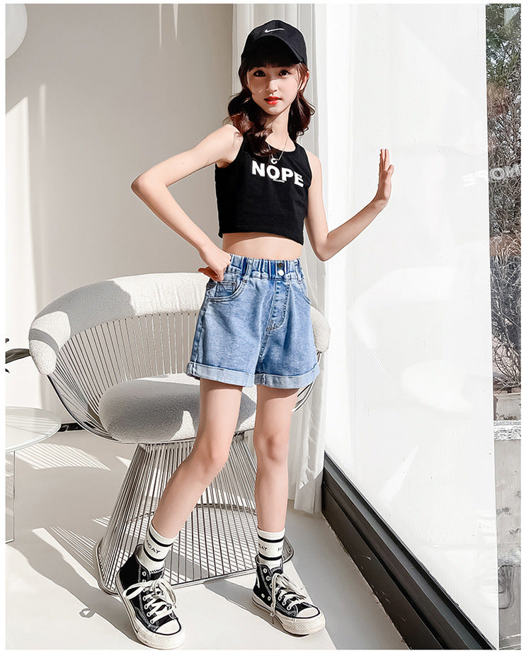 Girls' Simple Denim Shorts 2024 Summer Casual Loose Pants