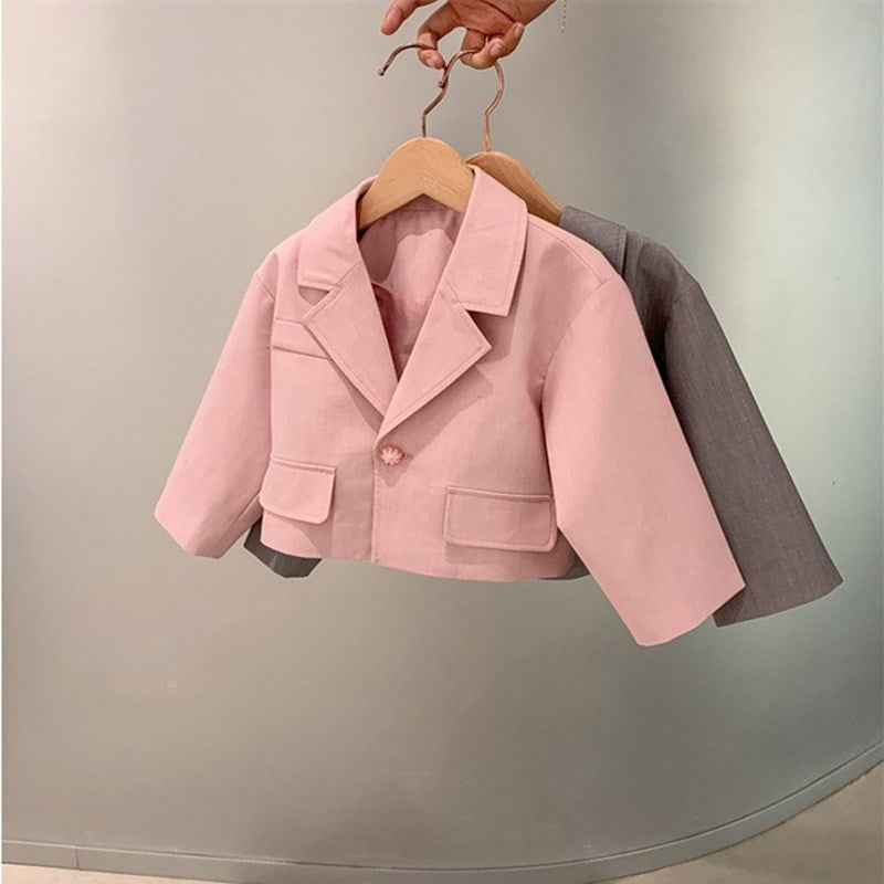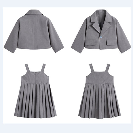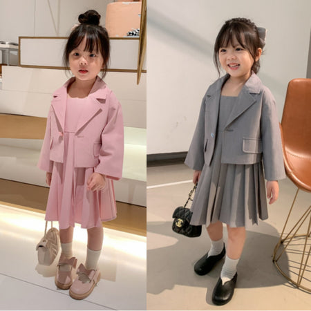 Add this girls’ Korean-style suit set for a fashionable seasonal wardrobe.