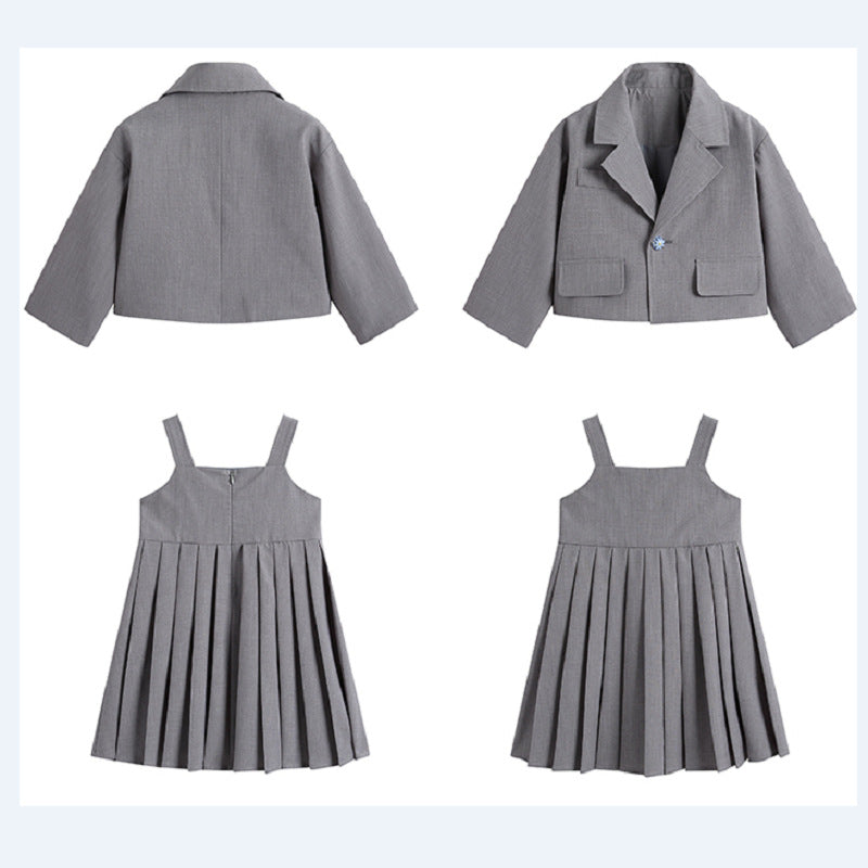 Bring chic sophistication to your daughter’s wardrobe with our girls’ Korean-style suit jacket set 🌸. This stylish outfit includes a jacket, vest, and skirt – perfect for spring and autumn occasions.