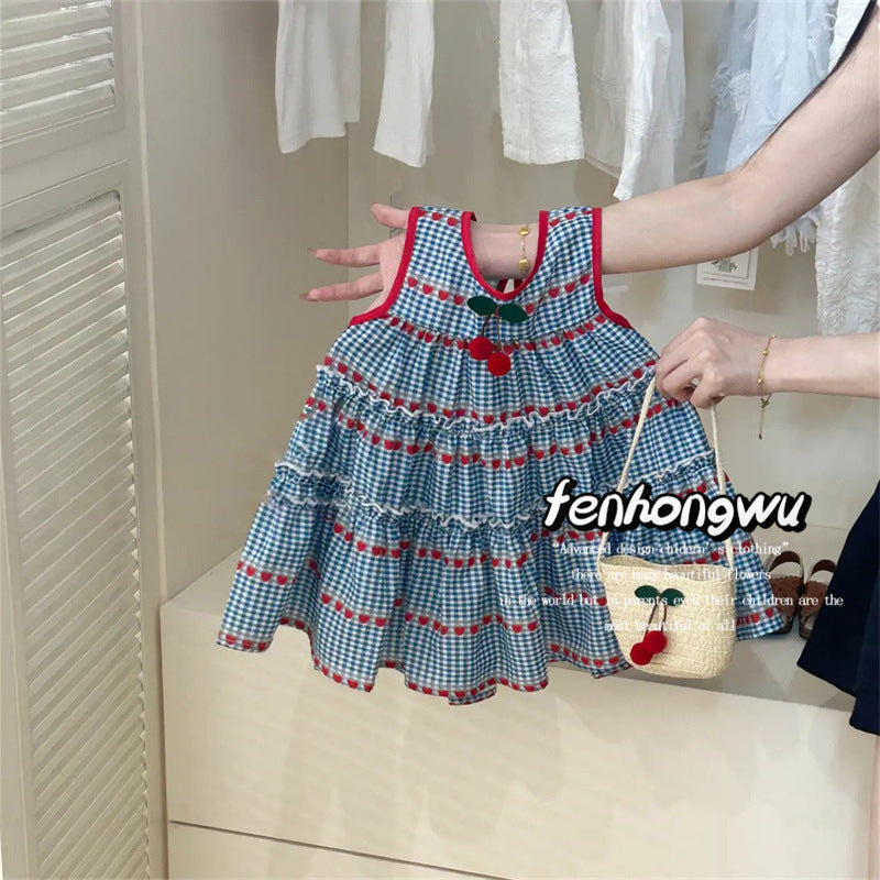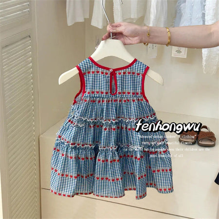 👗 The charming blue plaid pattern combined with a playful cherry print adds a fresh, adorable look perfect for casual outings, family gatherings, or birthday parties 🎉🍒. The sleeveless design allows freedom of movement and keeps your child comfortable and stylish in any summer activity.