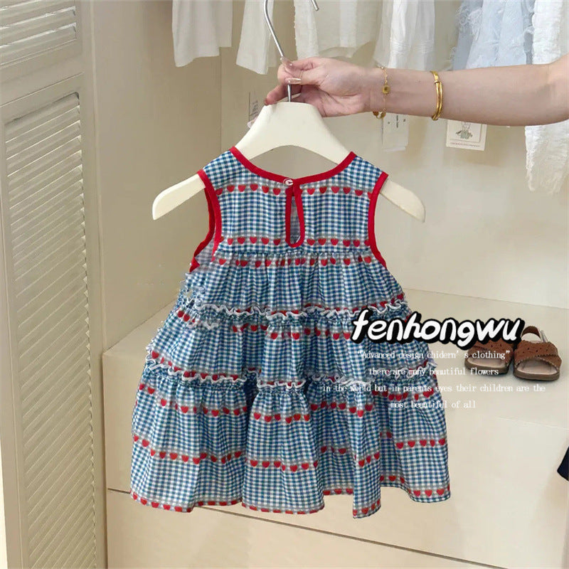 Girls’ Summer Blue Plaid Sleeveless Dress – Pink House
