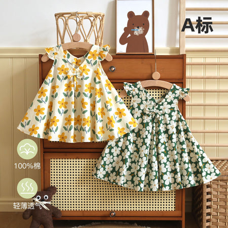 Girls' Summer Cotton Princess Dress β Floral Skirt