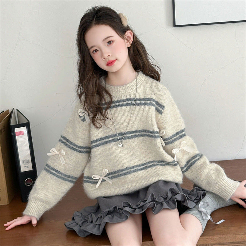 Keep your little one warm and stylish with our 2025 Autumn & Winter Korean Style Knitted Sweater for Girls! 🍁👧 Designed for big kids, this cozy round-neck sweater is the perfect blend of comfort, cuteness, and everyday fashion for Nepali girls.