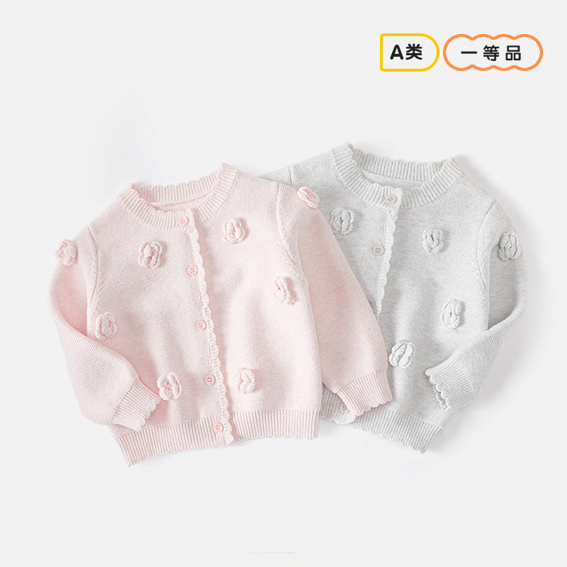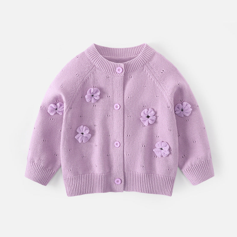 Sweet and cozy 🌸, this handmade girls’ sweater cardigan features three-dimensional flower details for a playful, stylish touch. Perfect for babies and young girls in cooler seasons.