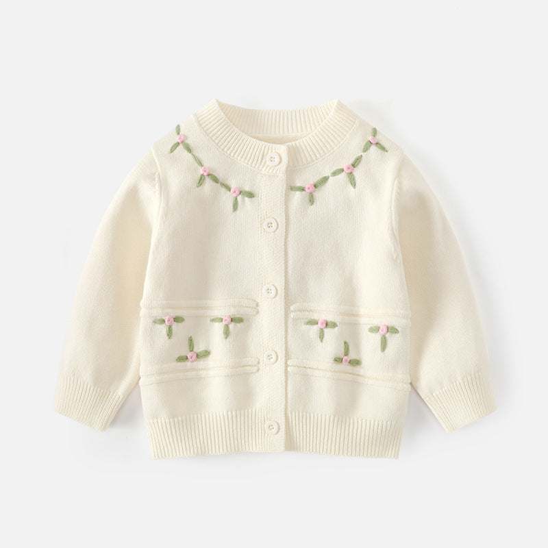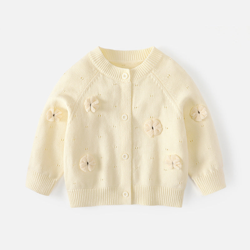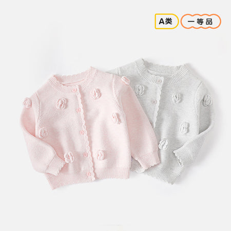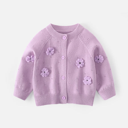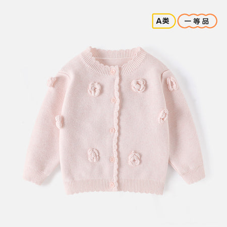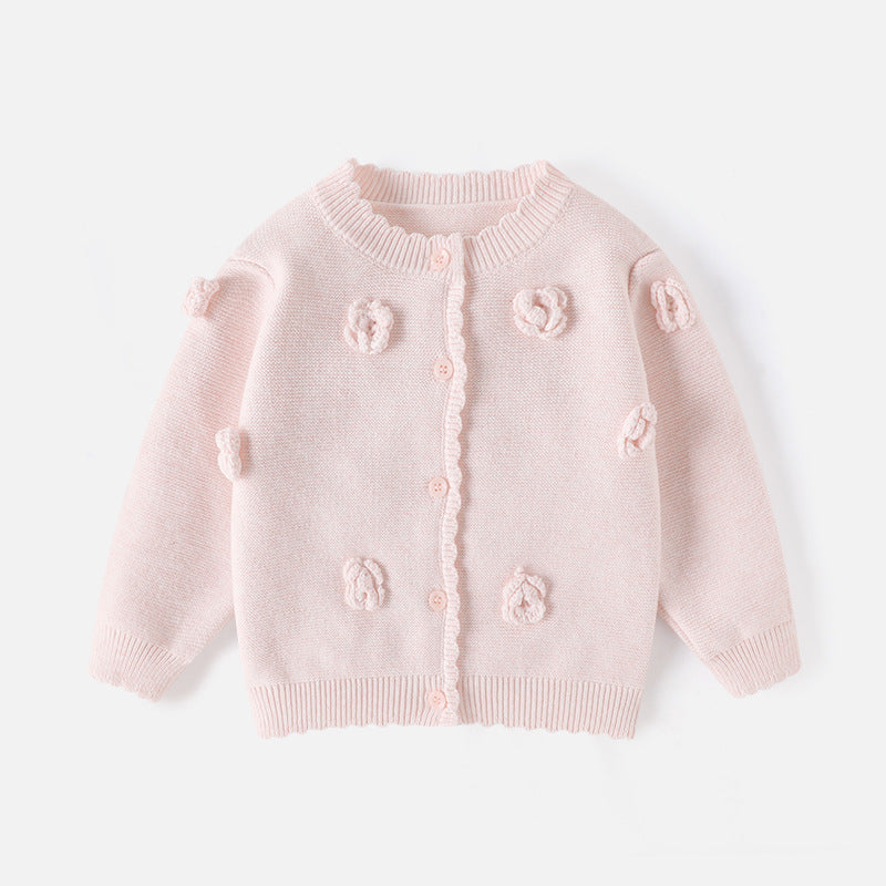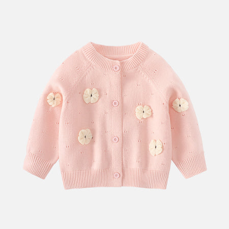 Girls’ Handmade Flower Knitted Sweater Baby Cardigan
