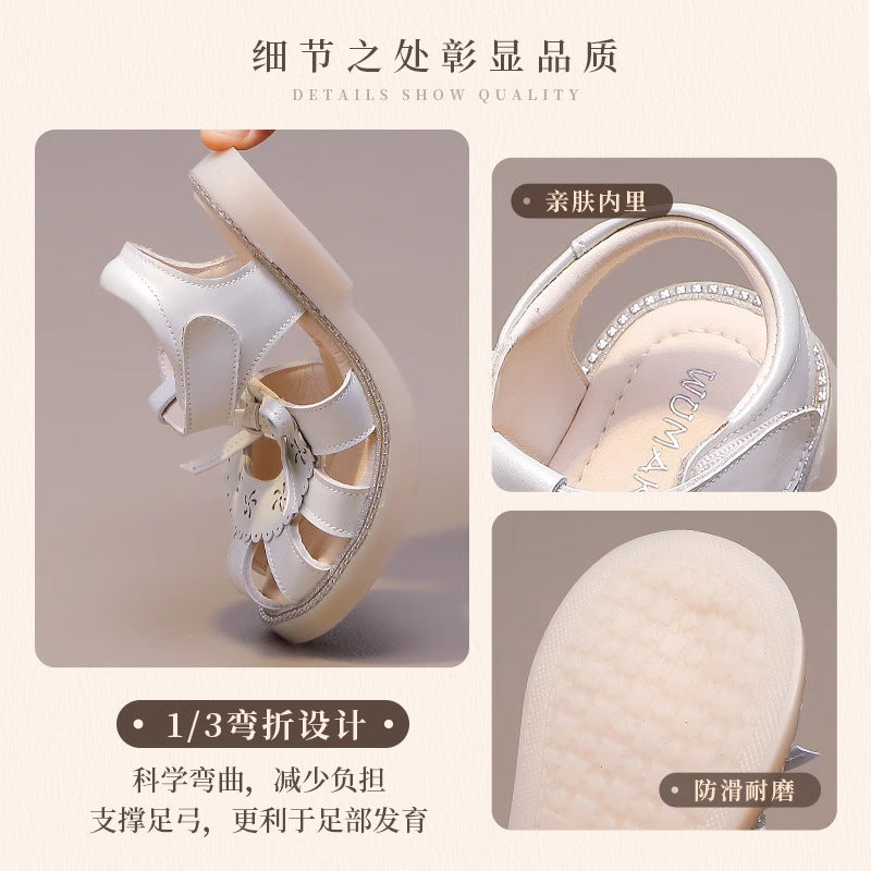 Made with soft, flexible materials, they provide a gentle fit that protects tiny feet while allowing natural movement. The non-slip sole ensures safety on slippery surfaces, making them perfect for playgrounds or sandy beaches. Featuring a cute princess-style design, these sandals add a charming touch to any summer outfit. 🌸