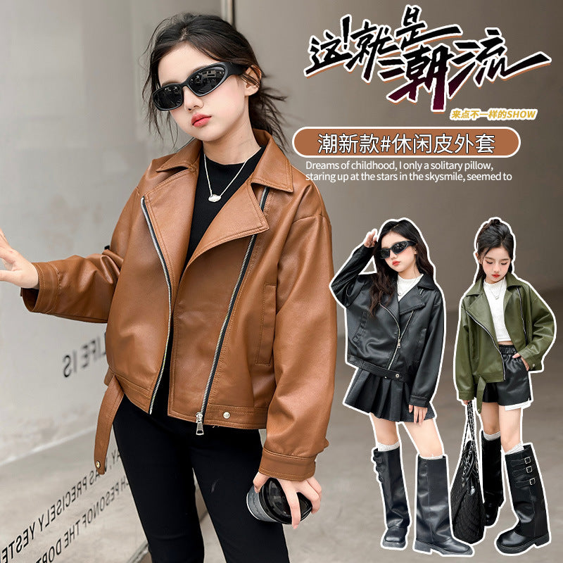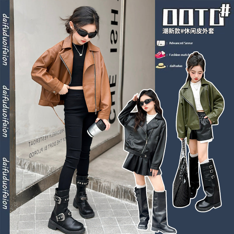 💖 Upgrade her wardrobe with the Girls’ 2025 Spring & Autumn Leather Top—where style, comfort, and trendy design meet perfectly!