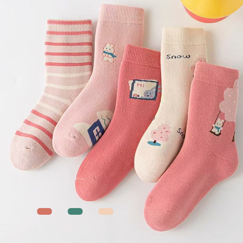 Girls’ Winter Cotton Socks – Warm Terry Mid-Calf 🧦