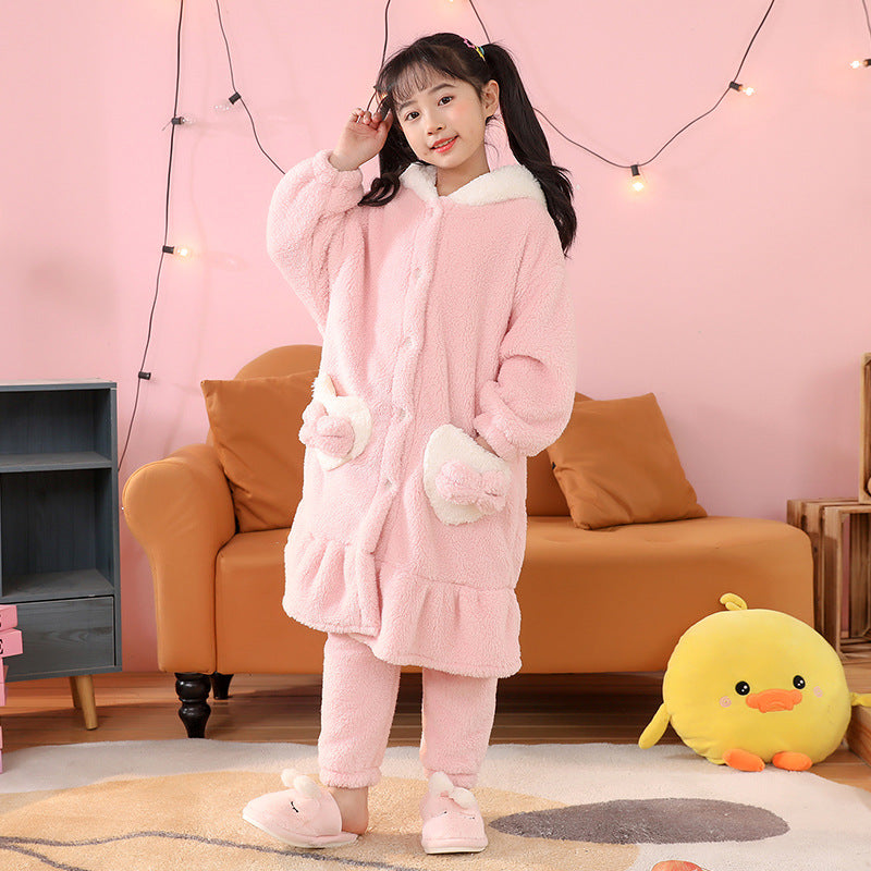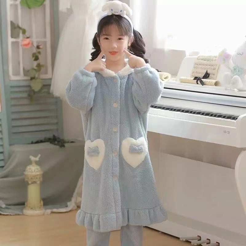 Snuggle up in warmth and cuteness with this Yugui Dog coral fleece nightgown set for girls! 🐶💤 Made for chilly winter nights in Nepal, this fleece-lined, thickened pajama set is soft, cozy, and perfect for babies and little girls. 🇳🇵👧