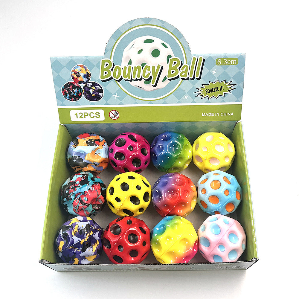 Discover the popular High Elastic PU Moonstone Ball—a colorful, hole-design decompression toy loved by kids in Nepal 🇳🇵! This vibrant moon ball offers excellent bounce and a satisfying tactile feel, perfect for stress relief and sensory play 🎉🌈.