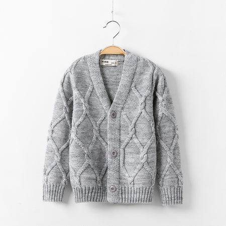 Kids’ V-Neck Plus Velvet Thickened Knitted Cardigan