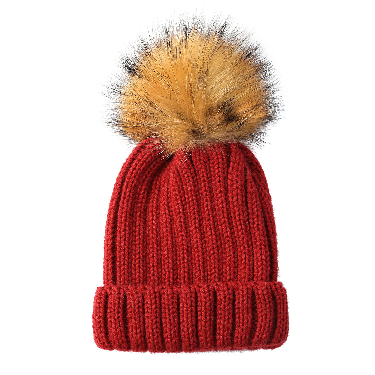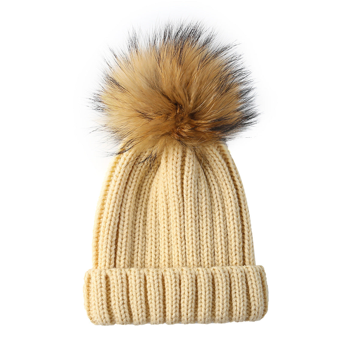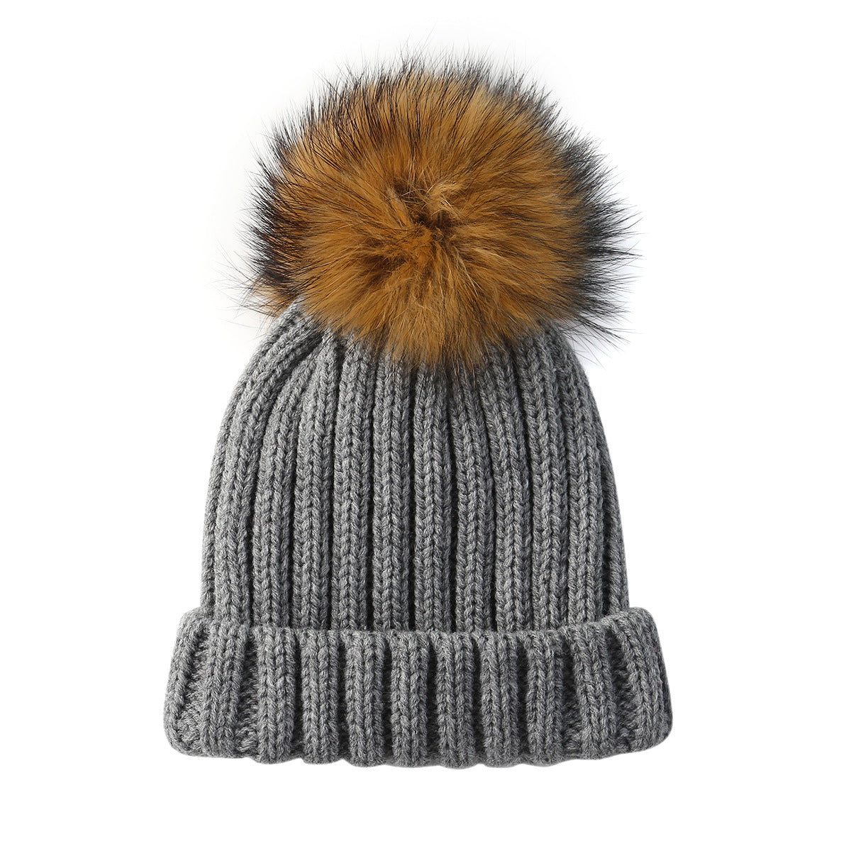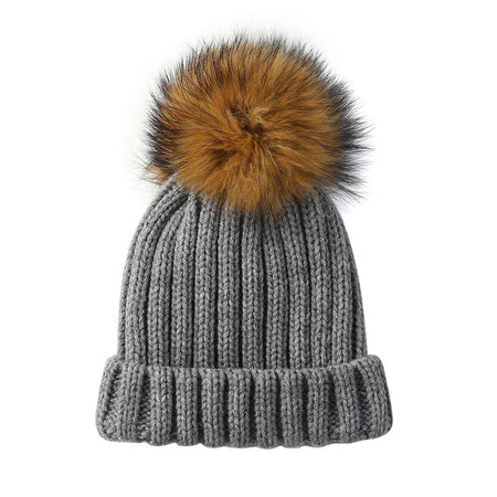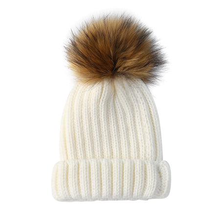 Kids Winter Wool Hat with Ear Protection & Fur Ball