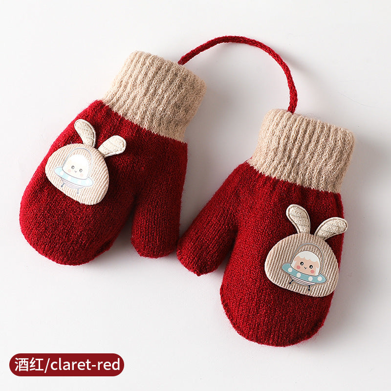 Kids Autumn Winter Double-Layer Velvet Gloves