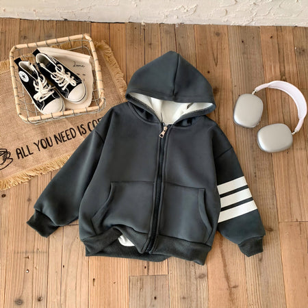 Kids’ Autumn Winter Fleece Hooded Zipper Jacket