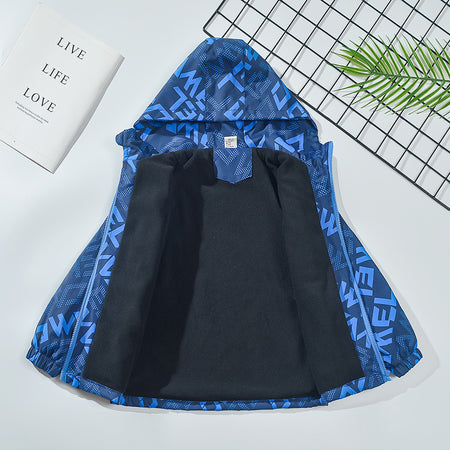 Kids’ Boys Velvet Hooded Windproof Jacket Spring & Fall
