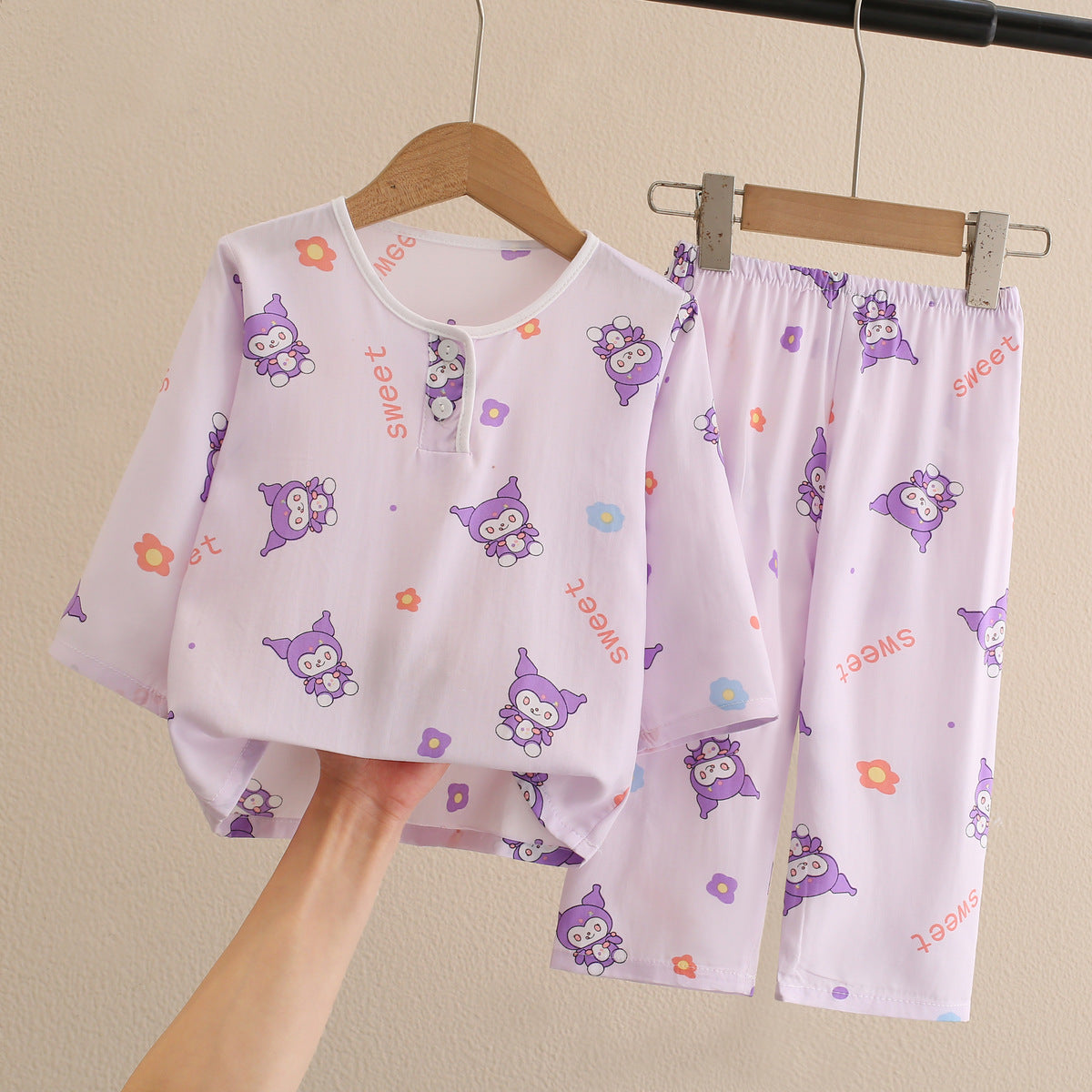 This pajama set combines style, comfort, and practicality for kids’ summer wardrobes. The cotton-silk fabric feels cool and smooth, making it ideal for warm nights while still offering light protection from cool air indoors. Whether it’s bedtime, playtime, or lounging with family, the Children’s Cotton Silk Pajamas keep little ones happy, comfortable, and stylish 🌟.